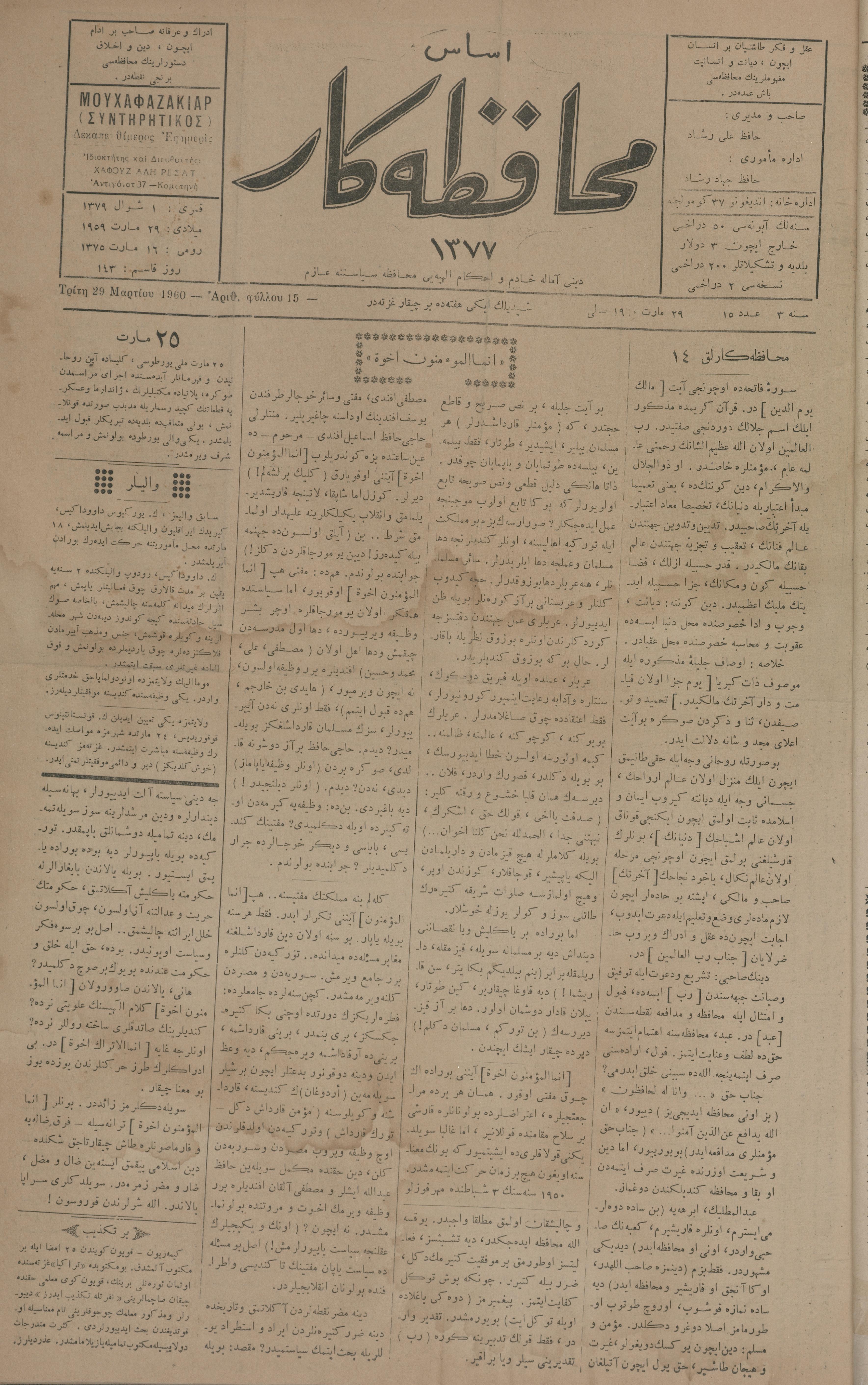 Esas muhafazakâr 1377, 29 Mart 1960 Sene 3 Aded 15
