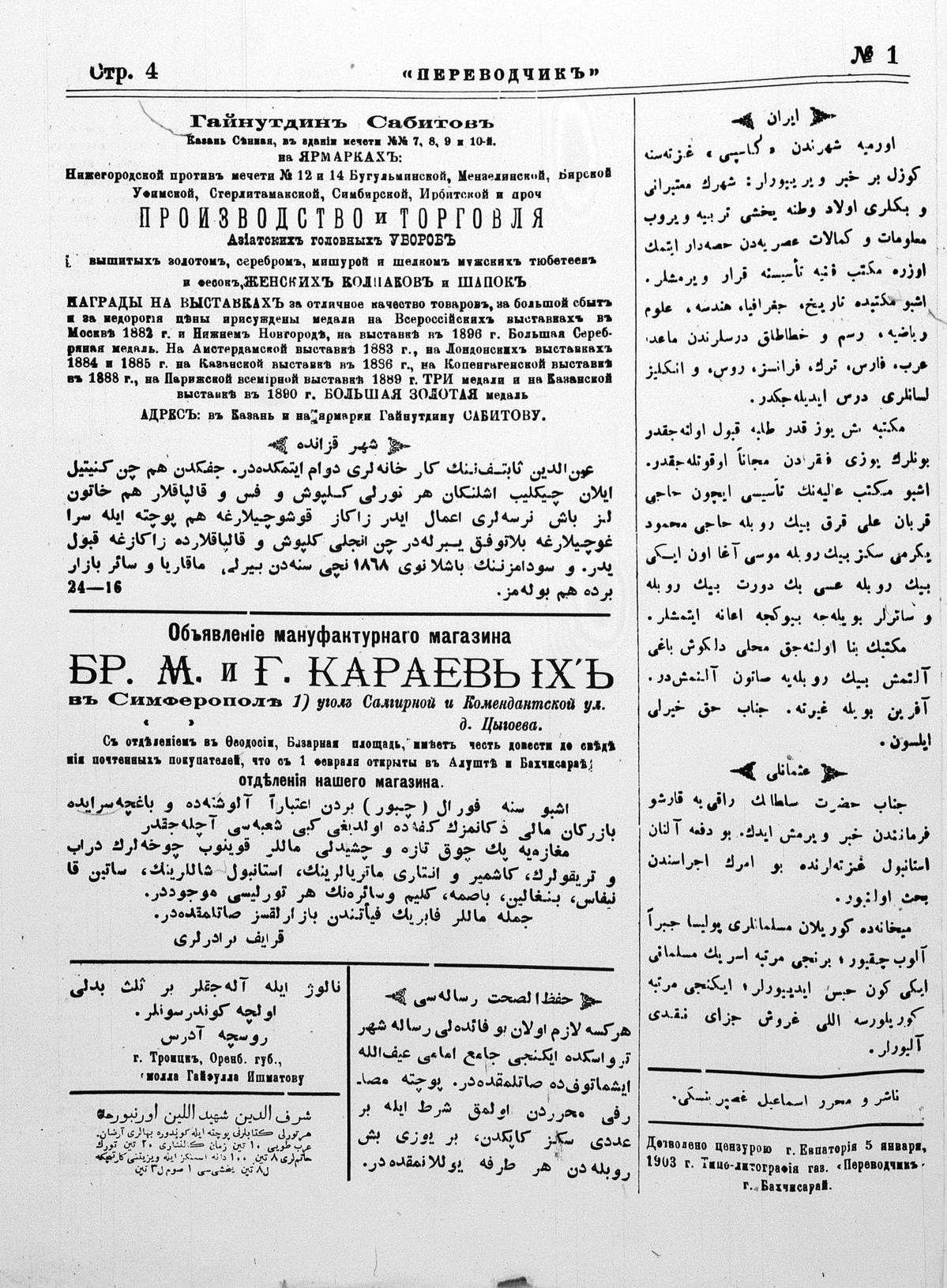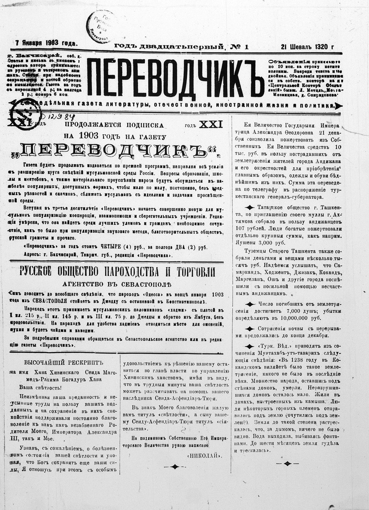 Turkish-Russian newspaper published in Crimea by İsmail Gaspıralı.