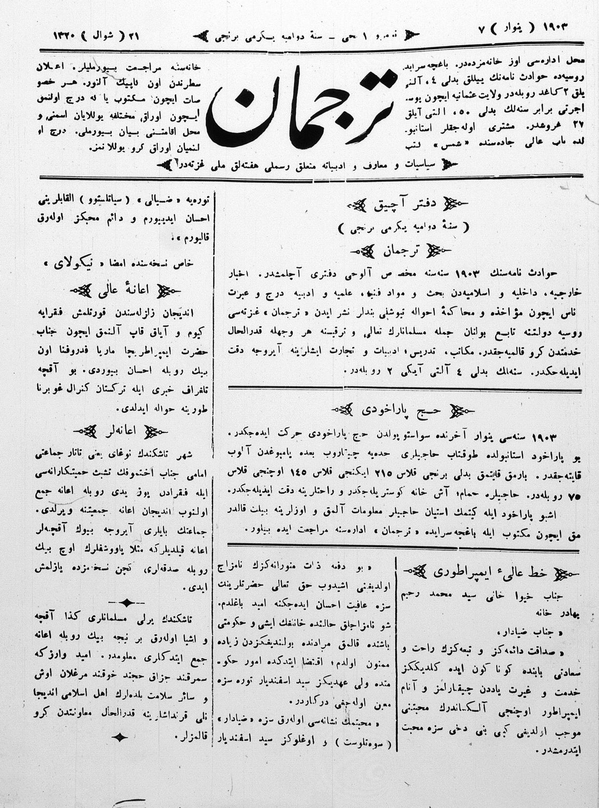 Tercüman, 07 January 1903 Year 21 No 1