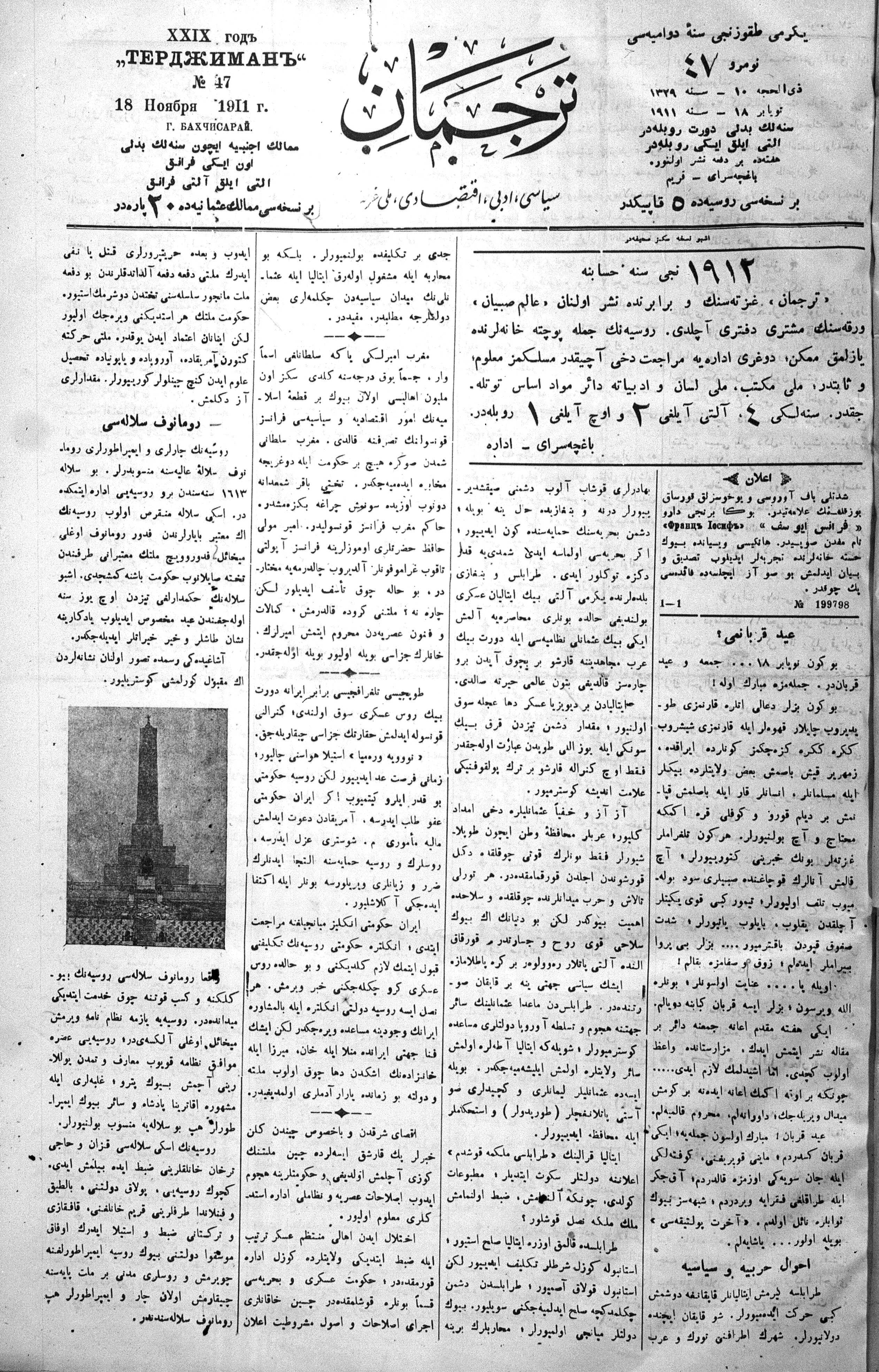 Tercüman, 18 November 1911 Year 29 No 47