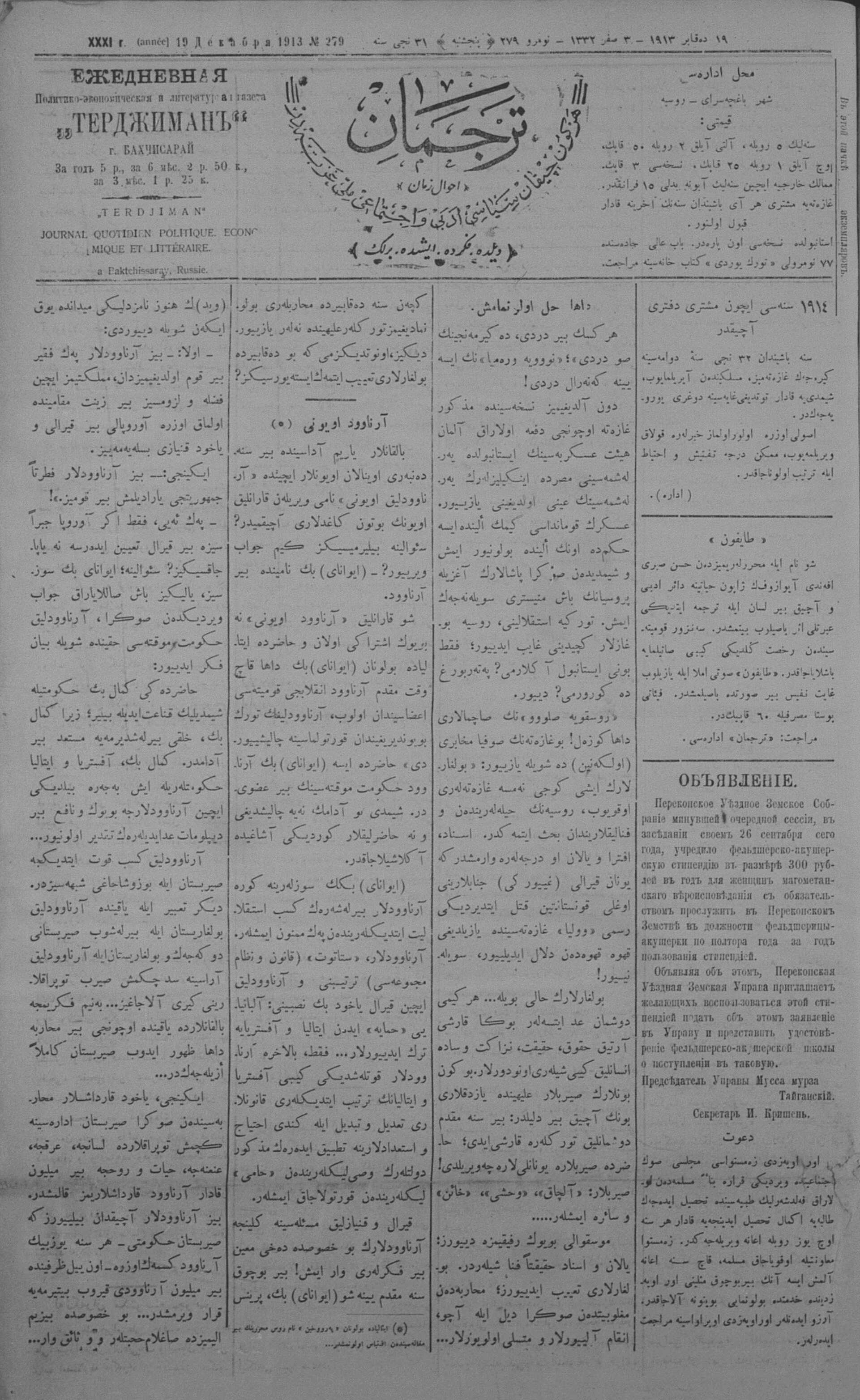 Tercüman, 19 December 1913 Year 31 No 279