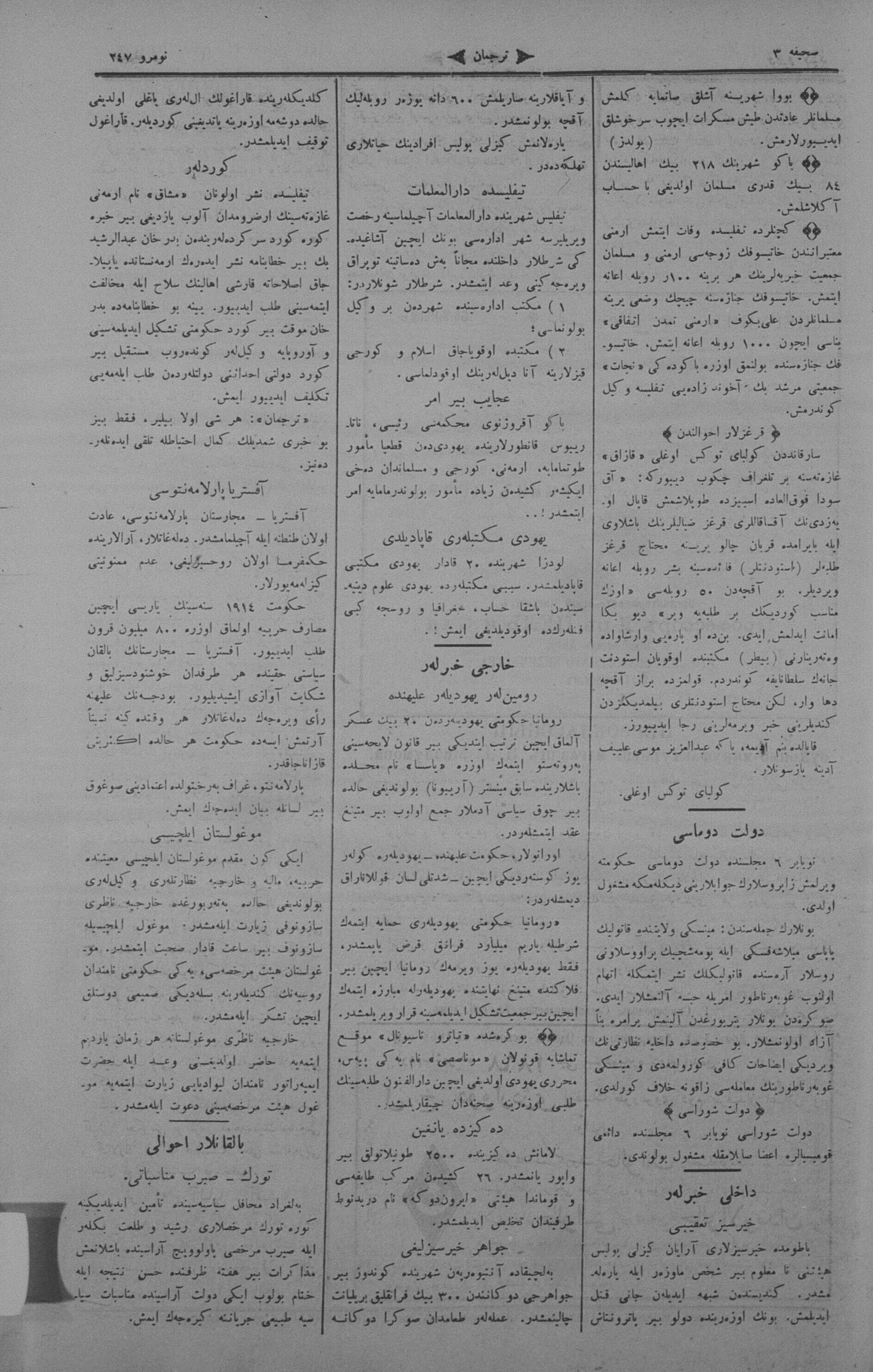 The name of the newspaper changed to Tercüman-ı Ahval-i Zaman in 1905. In 1909, it started to be published under its first name, Tercüman.