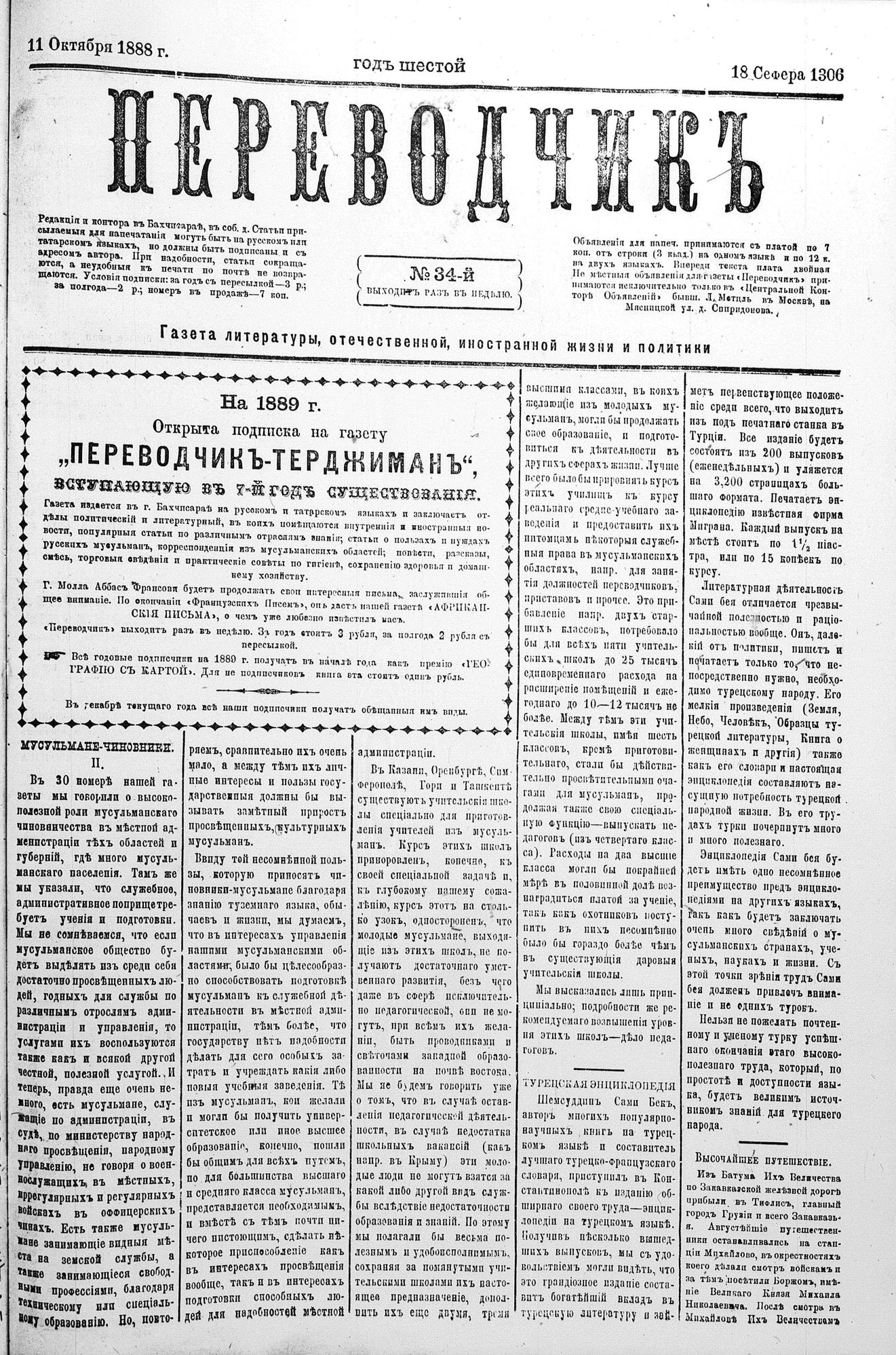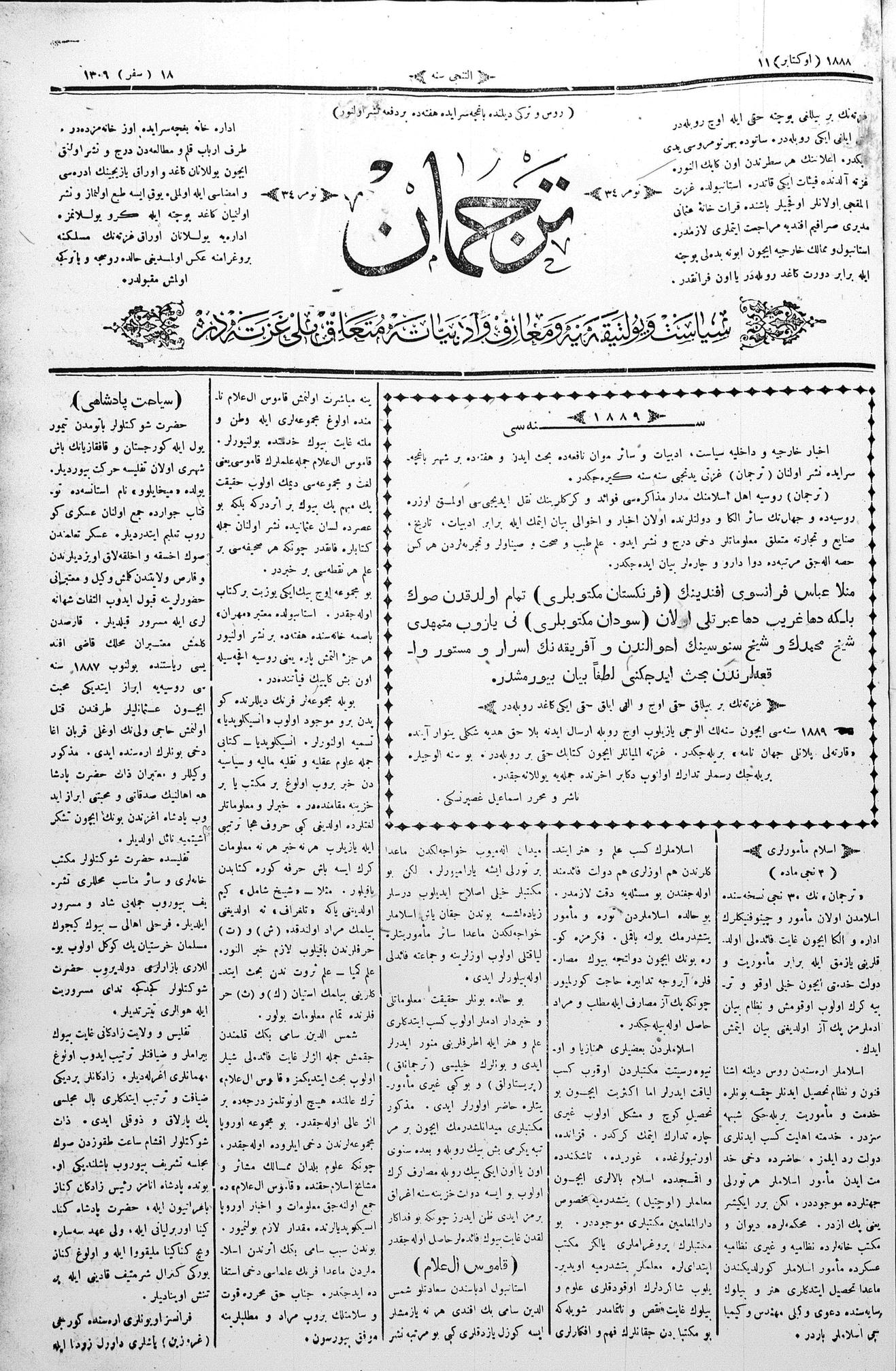 Tercüman, 11 October 1888 Year 6 No 34