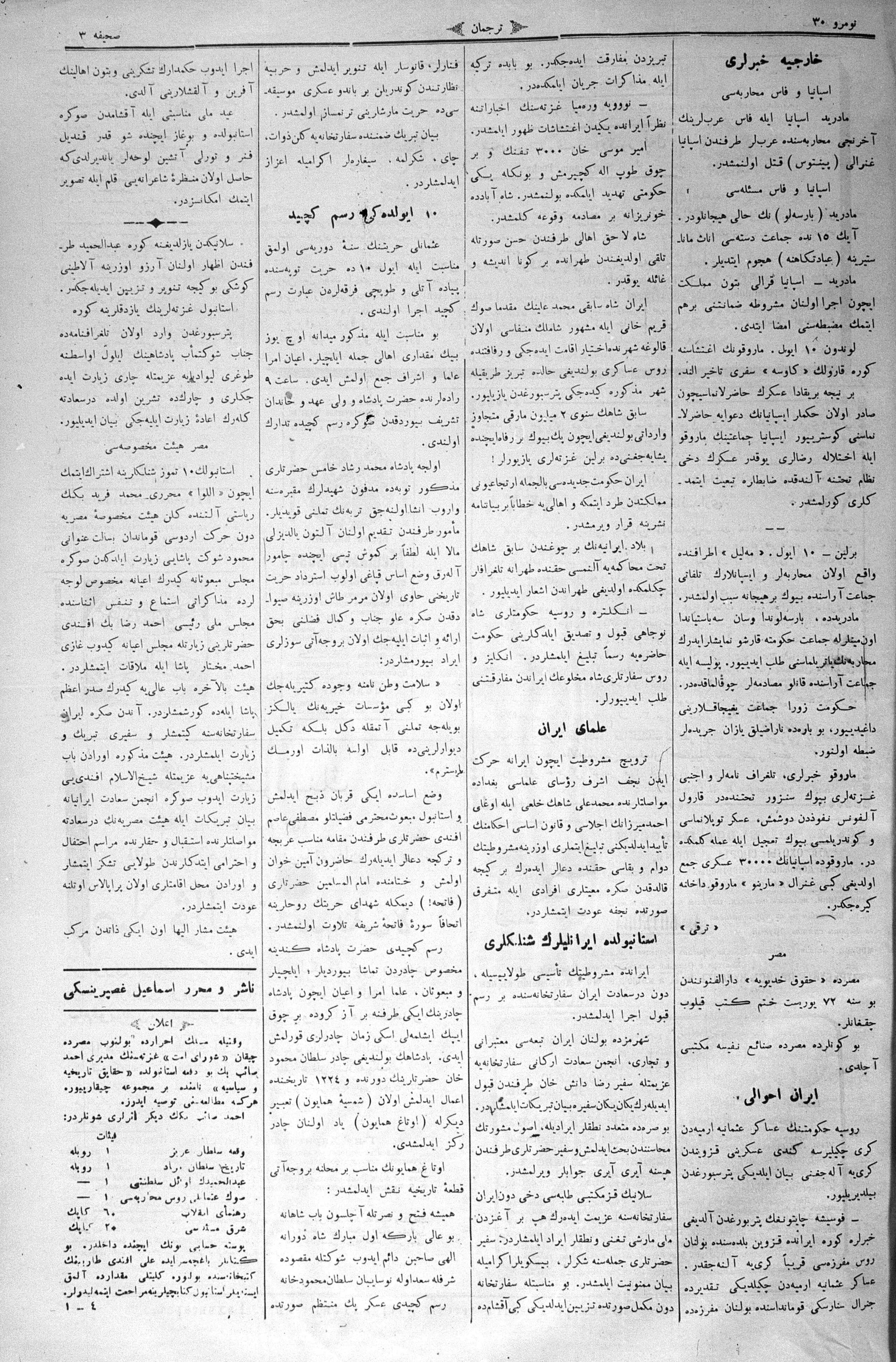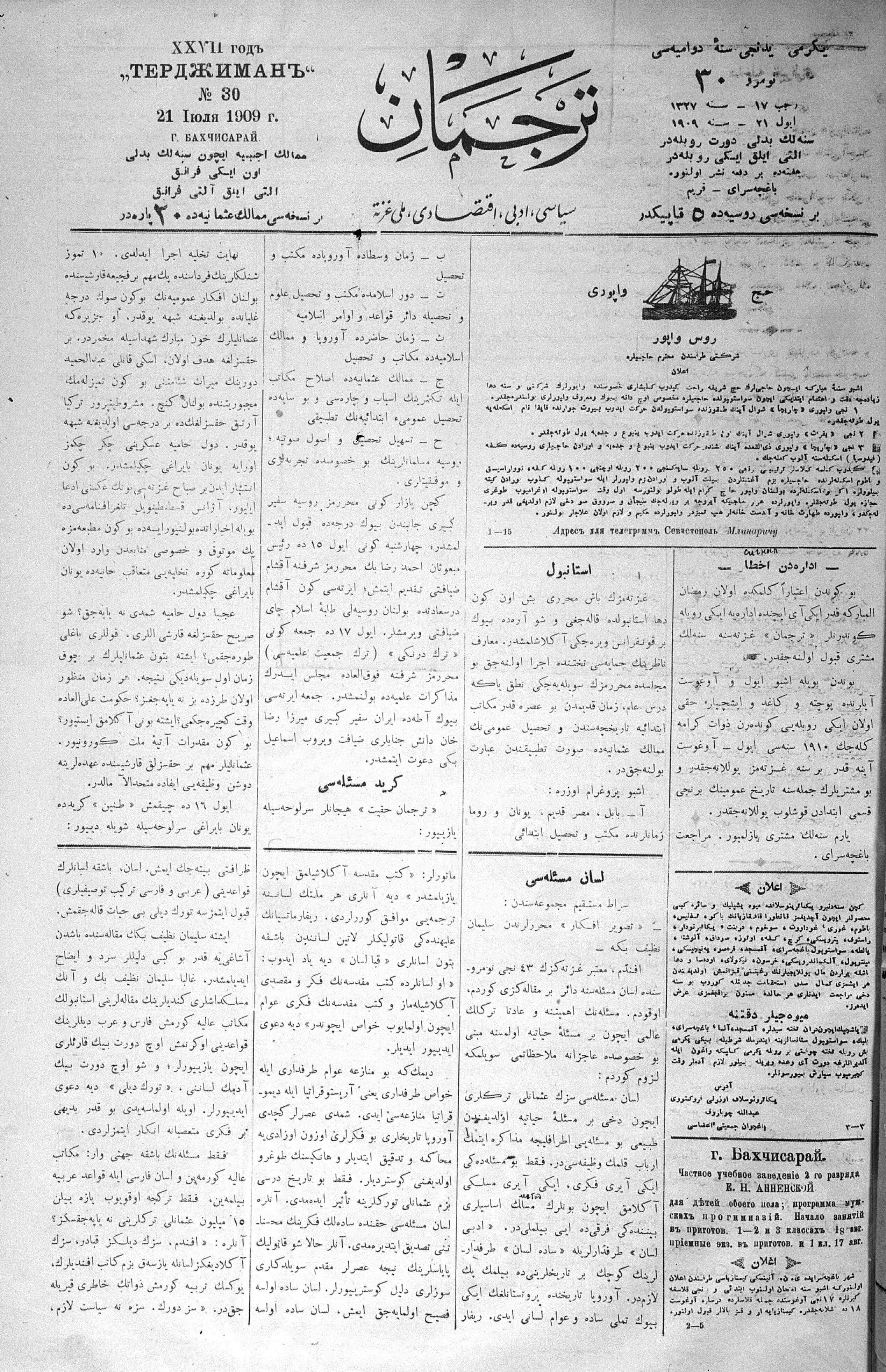 Tercüman, 21 July 1909 Year 27 No 30