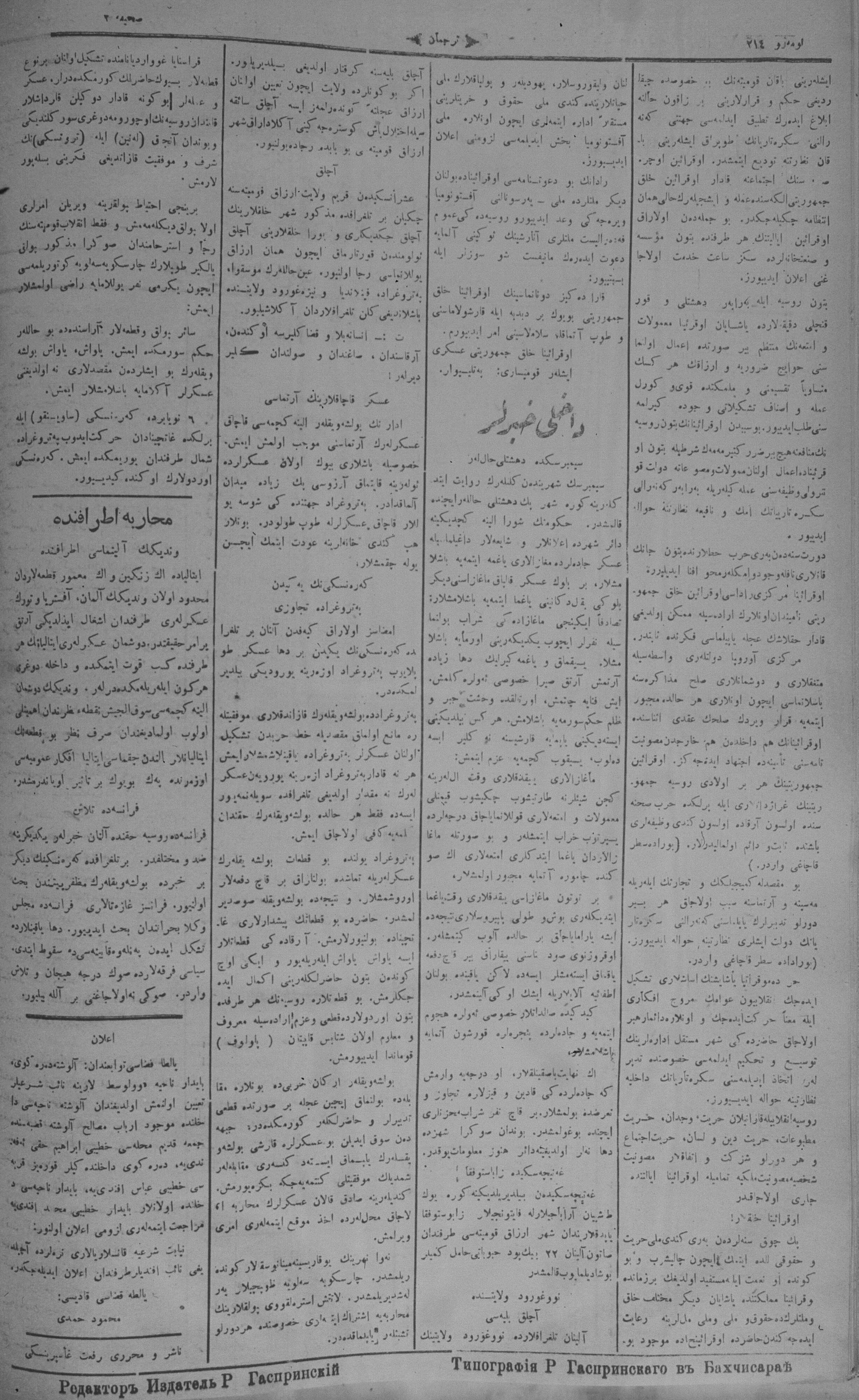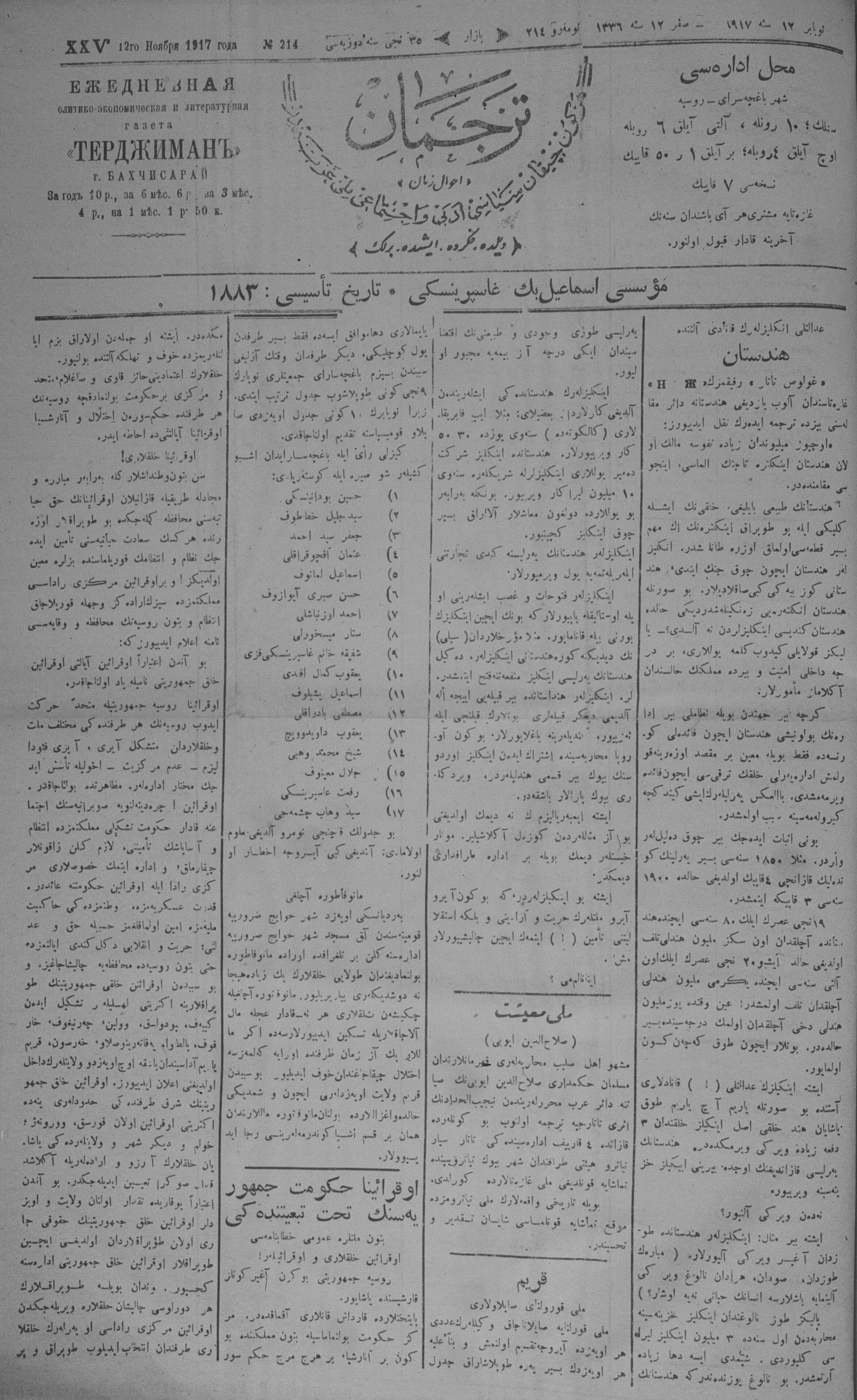 Turkish-Russian newspaper published in Crimea by İsmail Gaspıralı.