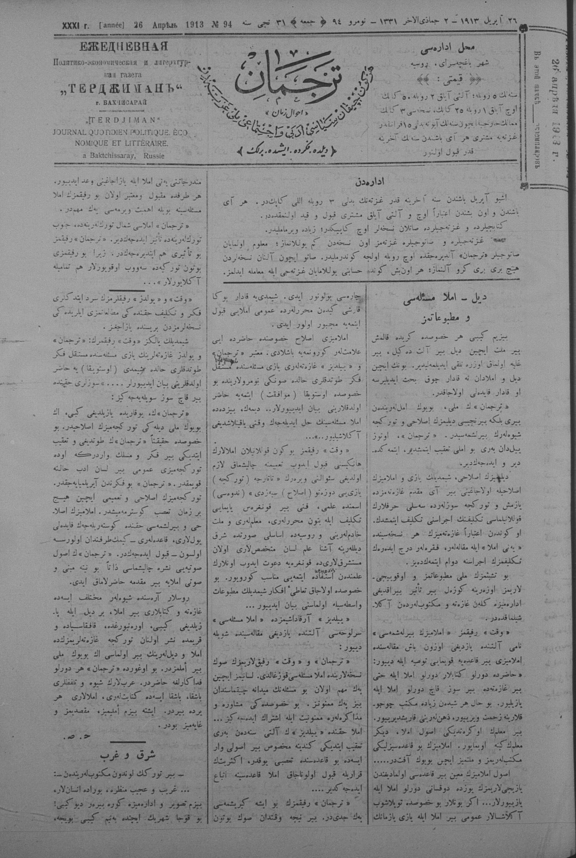 Turkish-Russian newspaper published in Crimea by İsmail Gaspıralı.