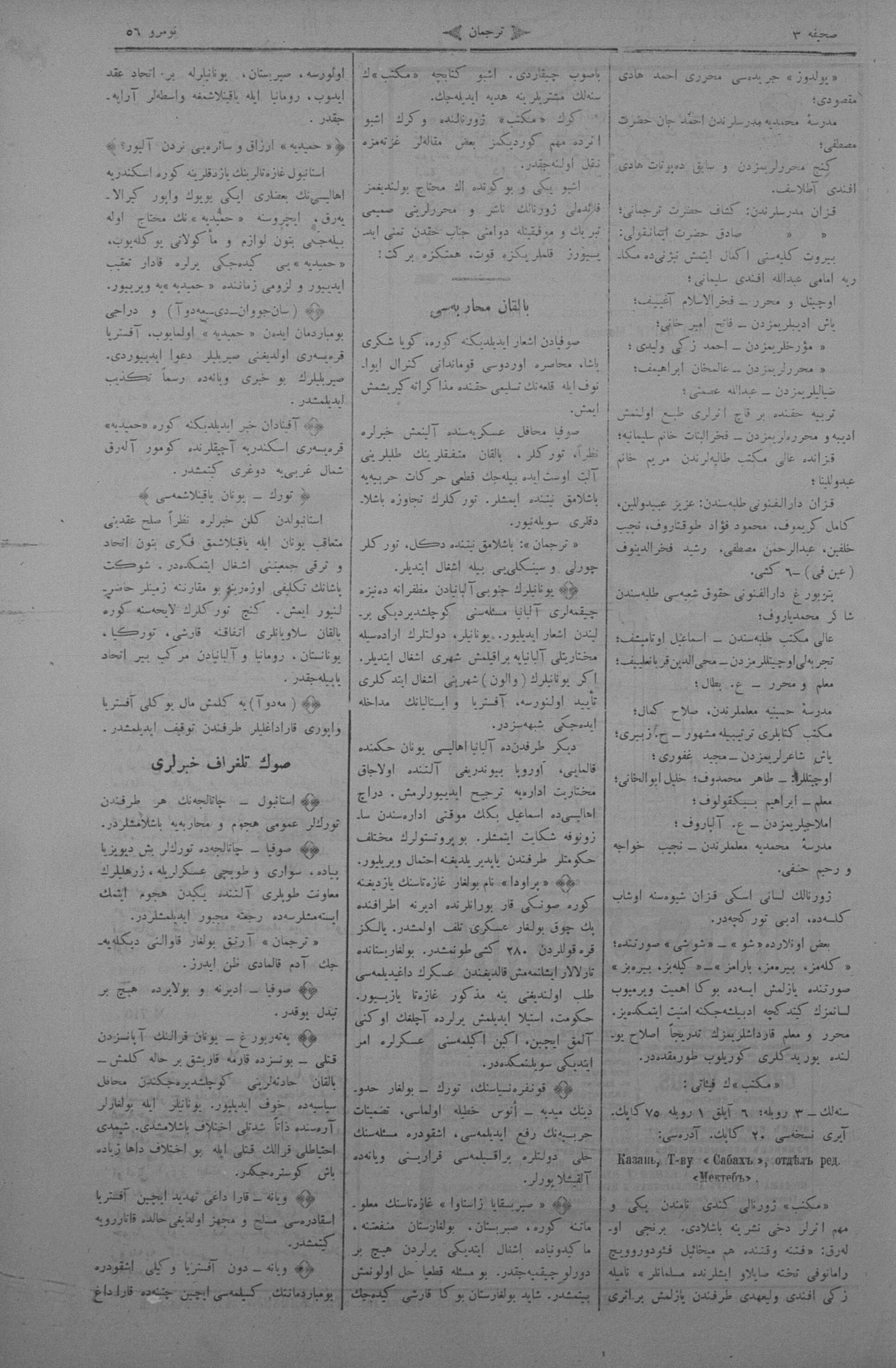The name of the newspaper changed to Tercüman-ı Ahval-i Zaman in 1905. In 1909, it started to be published under its first name, Tercüman.