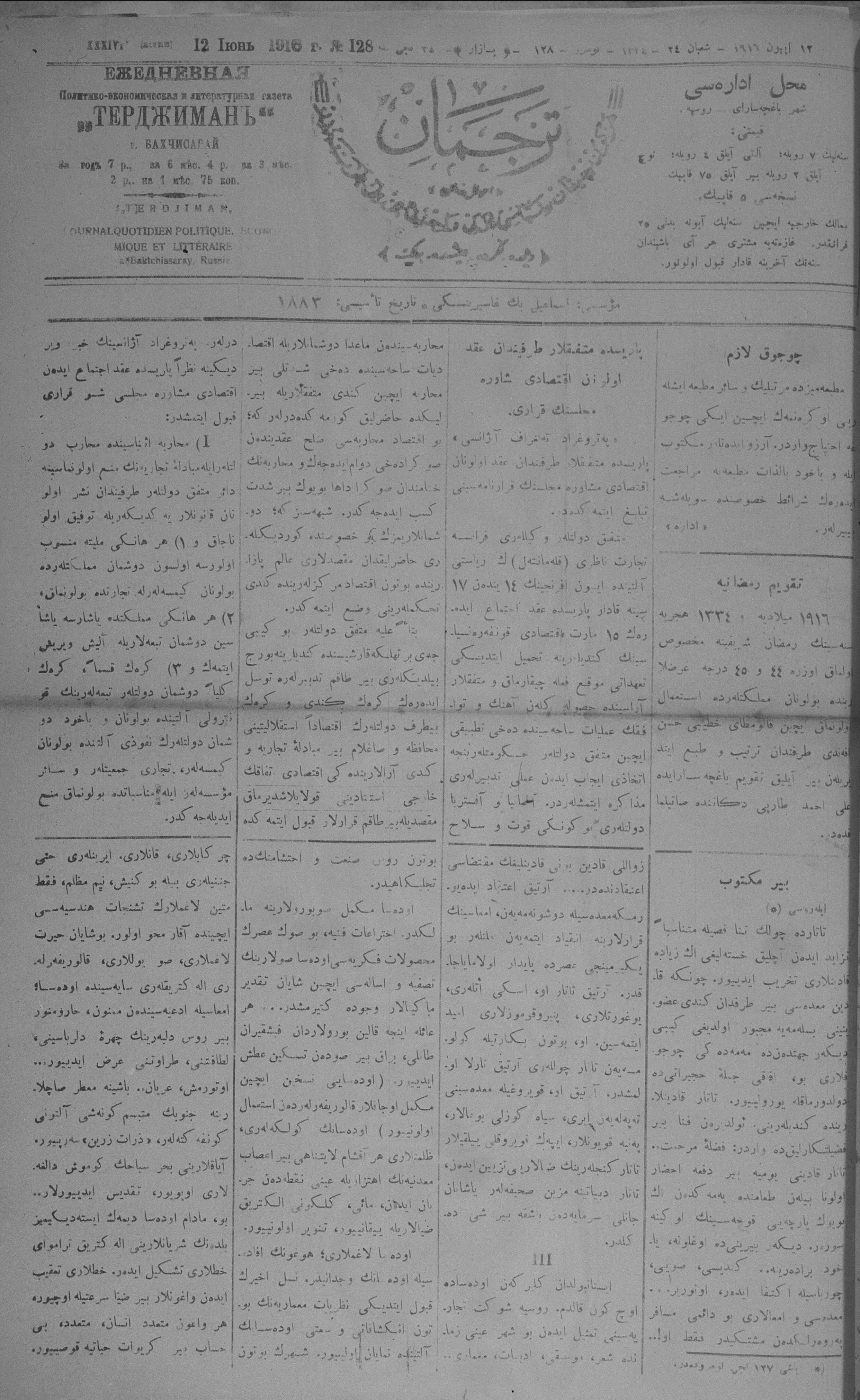 Turkish-Russian newspaper published in Crimea by İsmail Gaspıralı.