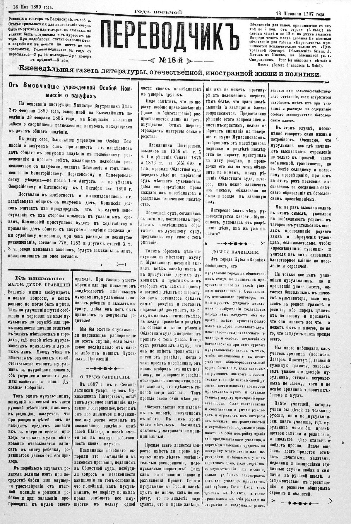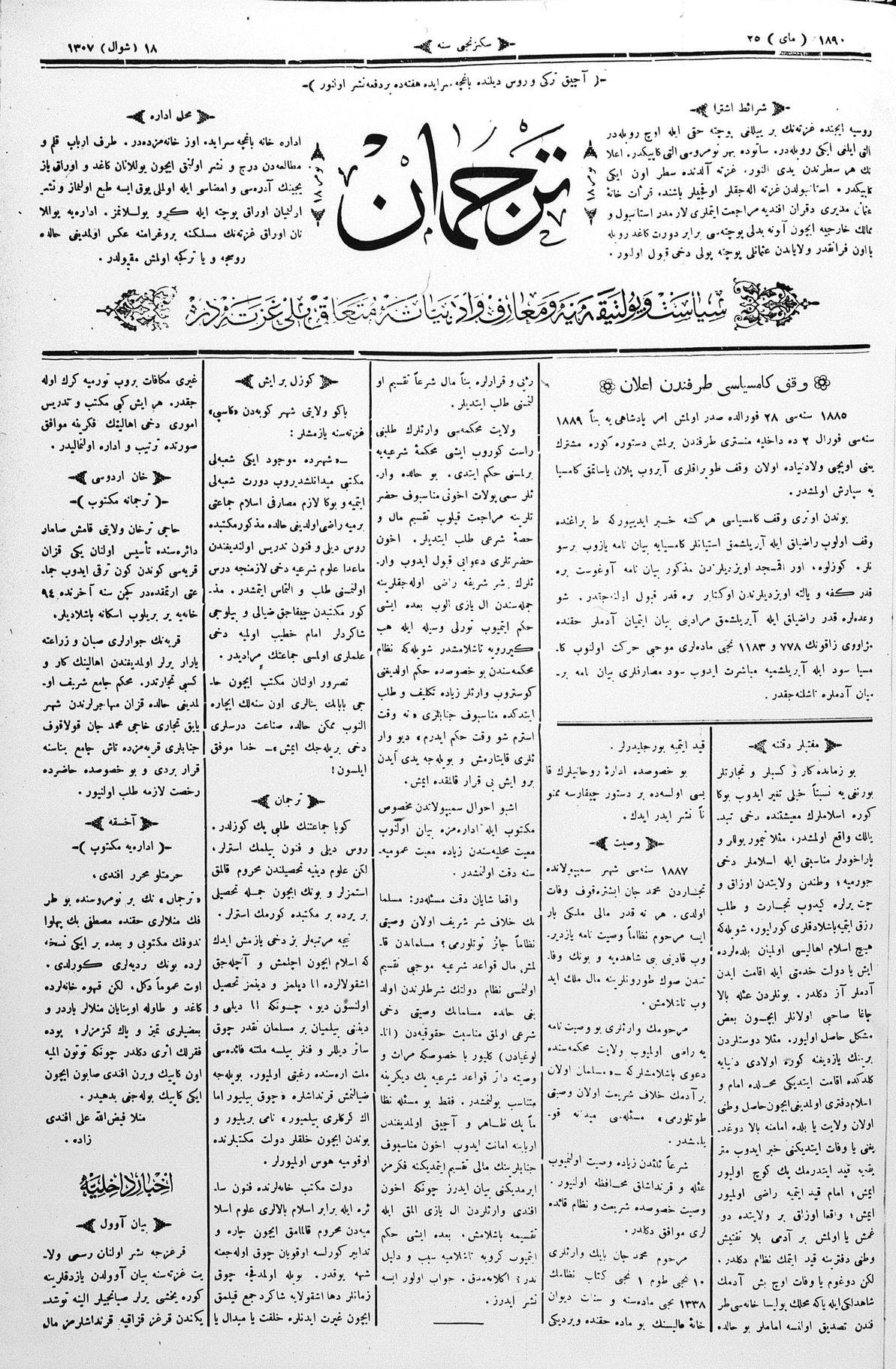 Tercüman, 25 May 1890 Year 8 No 18
