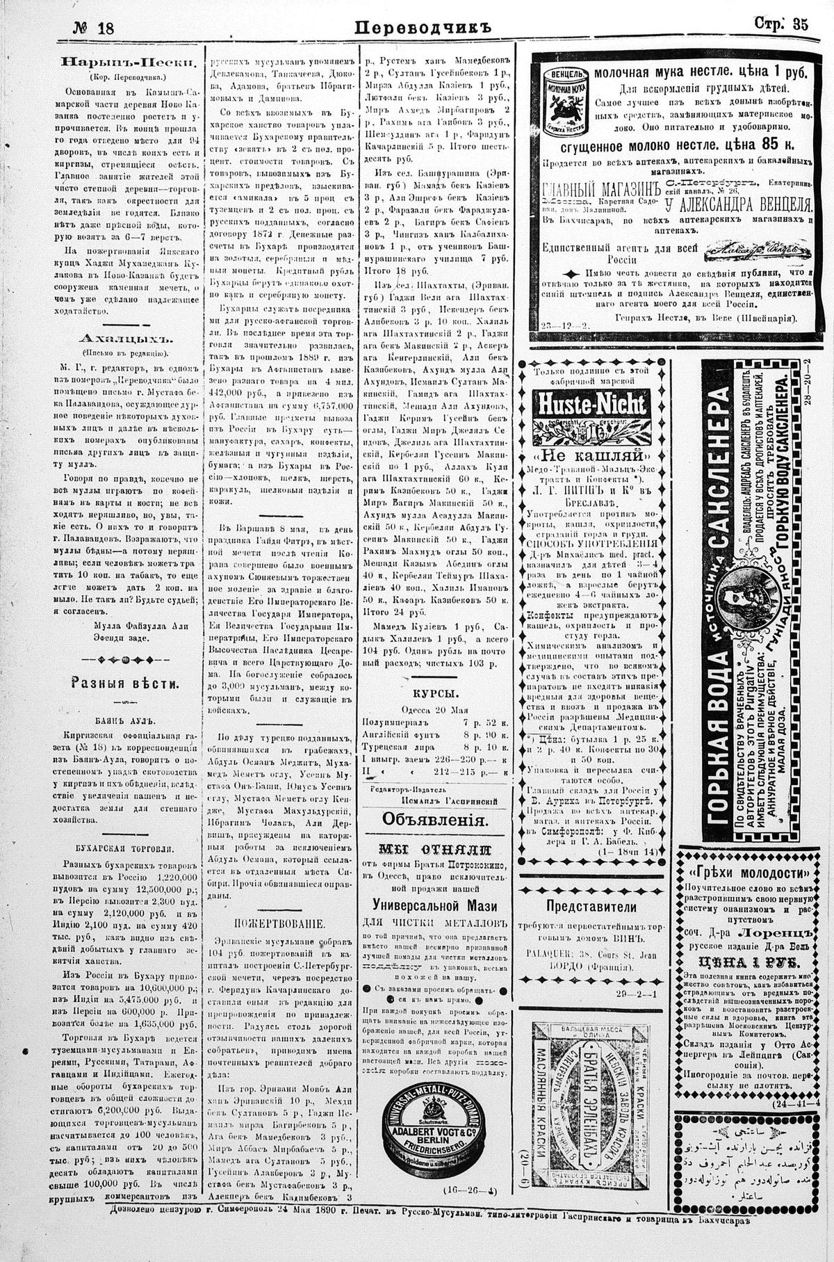 Different spellings of Tercüman: Terdzhiman, Terjuman, Perevodçik and Terjiman.