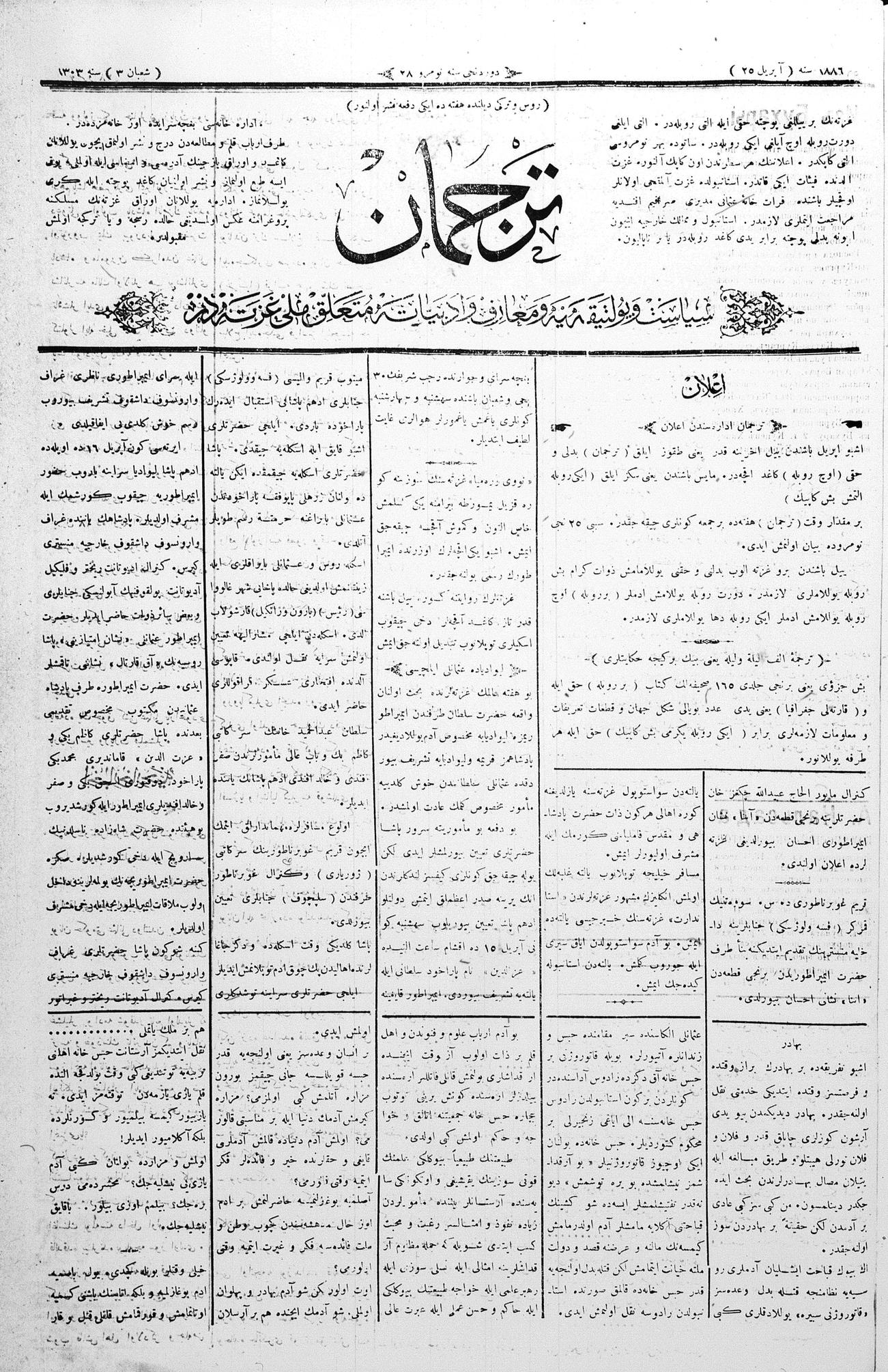 The name of the newspaper changed to Tercüman-ı Ahval-i Zaman in 1905. In 1909, it started to be published under its first name, Tercüman.