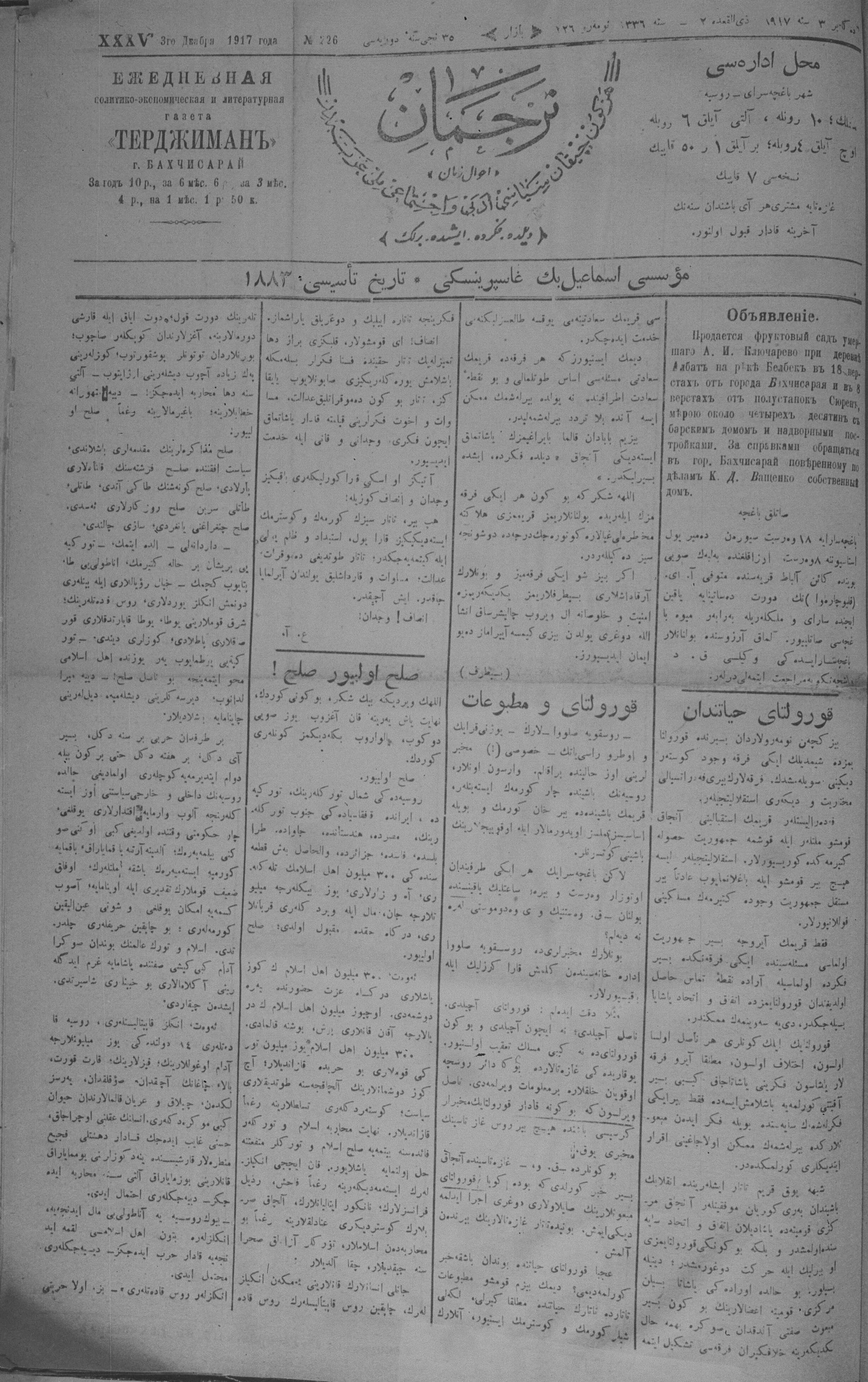 Turkish-Russian newspaper published in Crimea by İsmail Gaspıralı.
