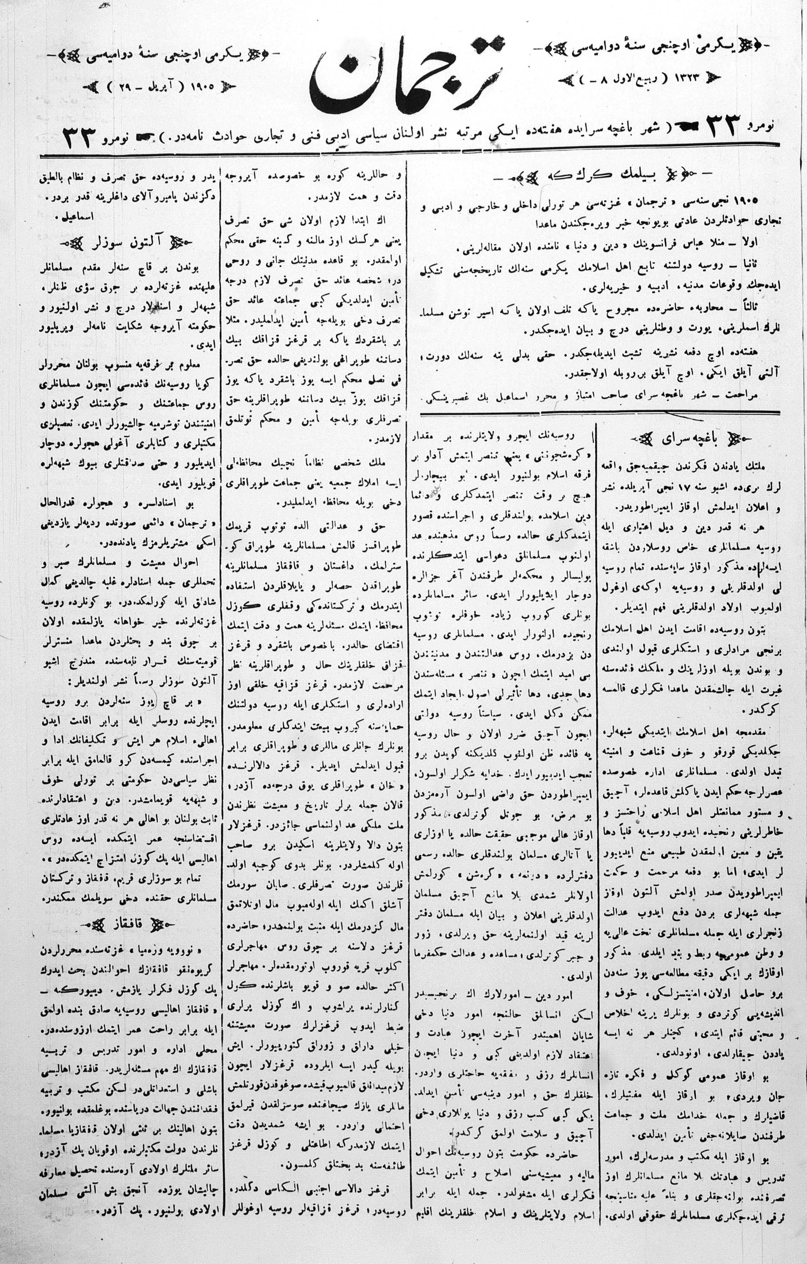 Tercüman, 29 April 1905 Year 23 No 33