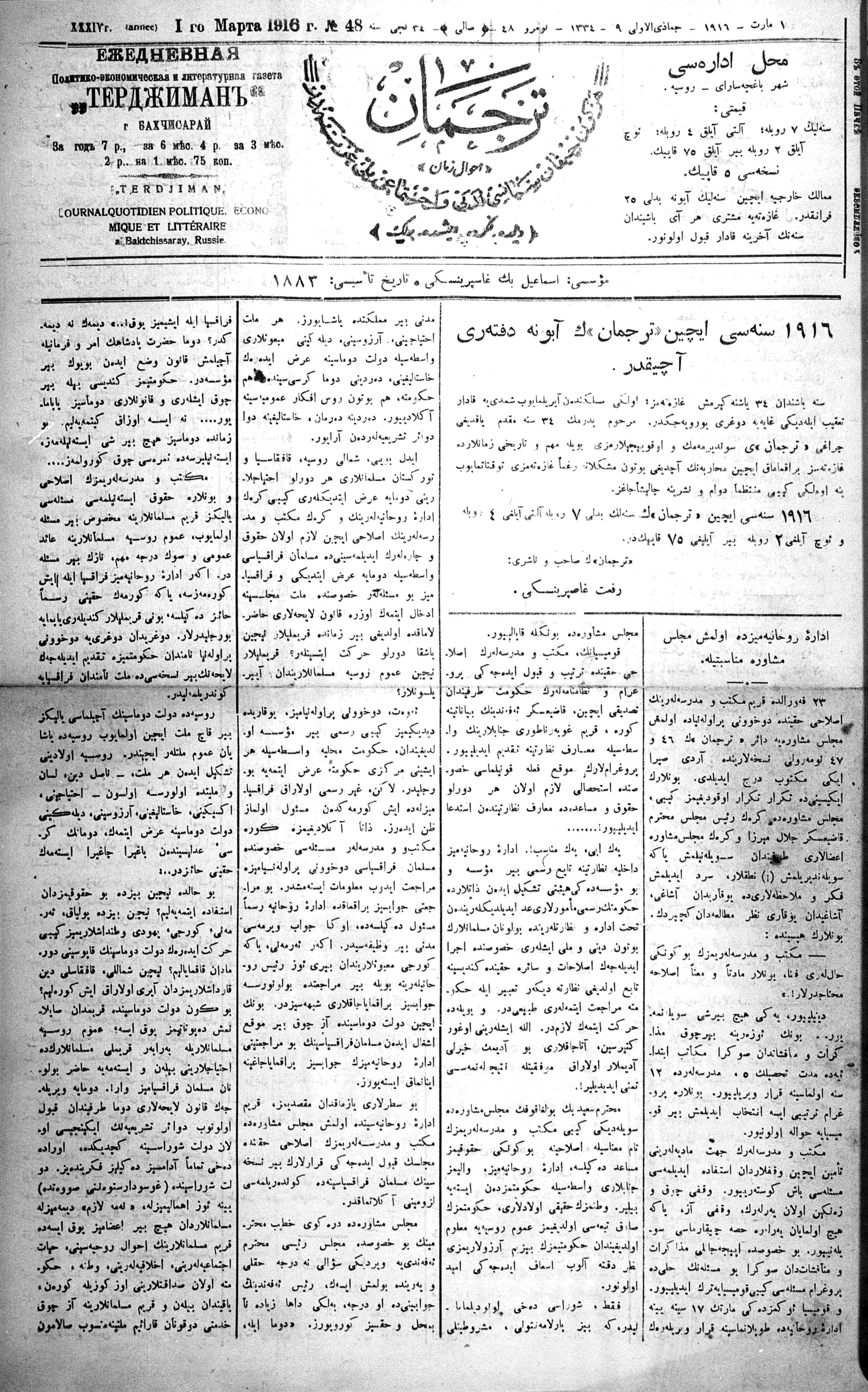 Turkish-Russian newspaper published in Crimea by İsmail Gaspıralı.