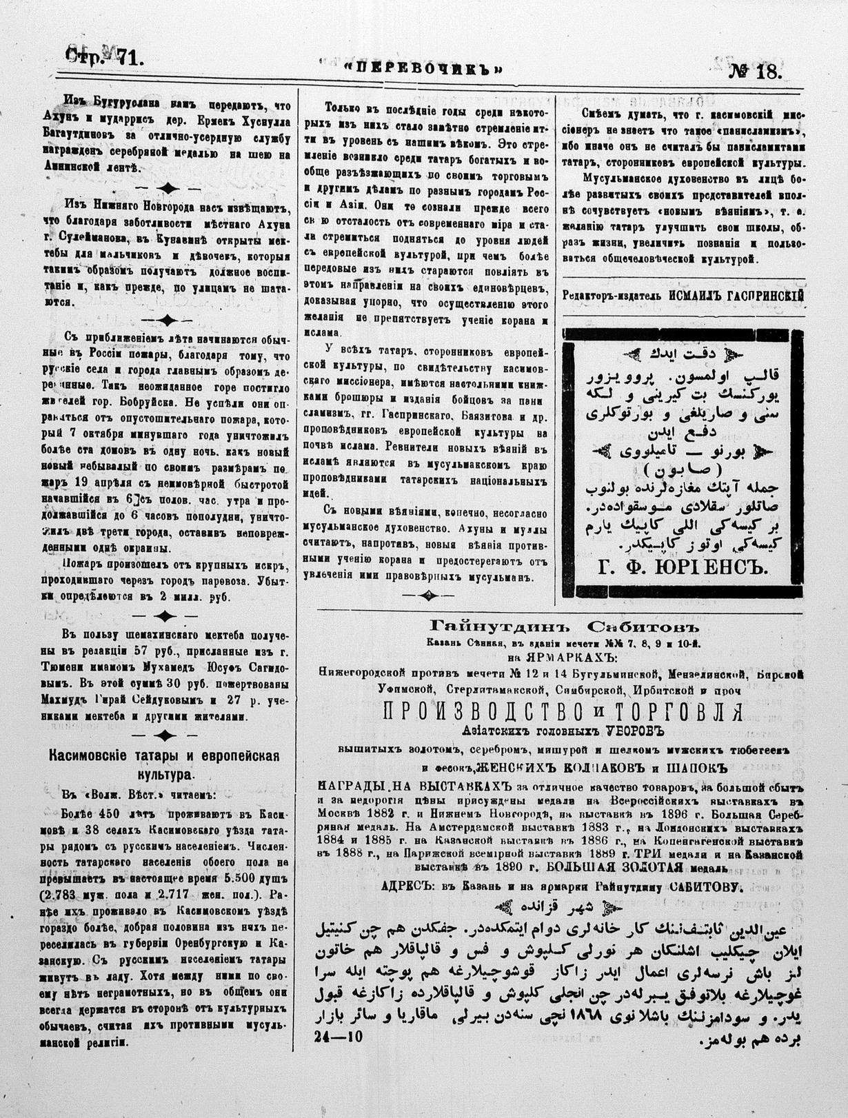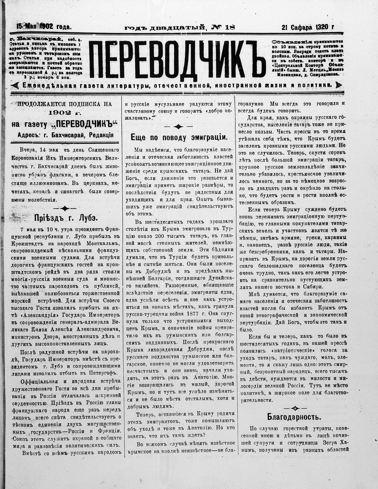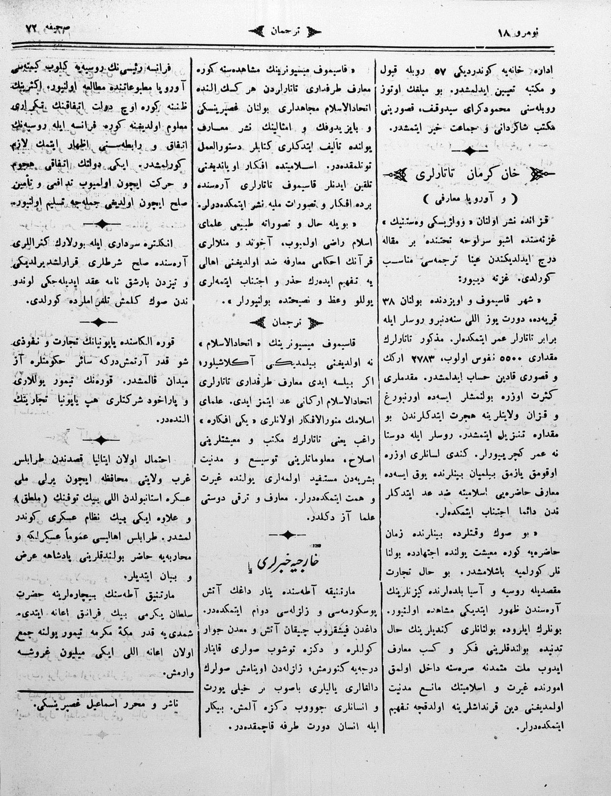 Turkish-Russian newspaper published in Crimea by İsmail Gaspıralı.
