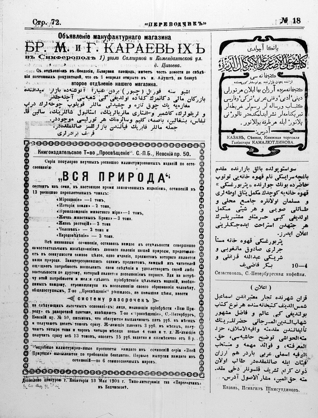 Different spellings of Tercüman: Terdzhiman, Terjuman, Perevodçik and Terjiman.
