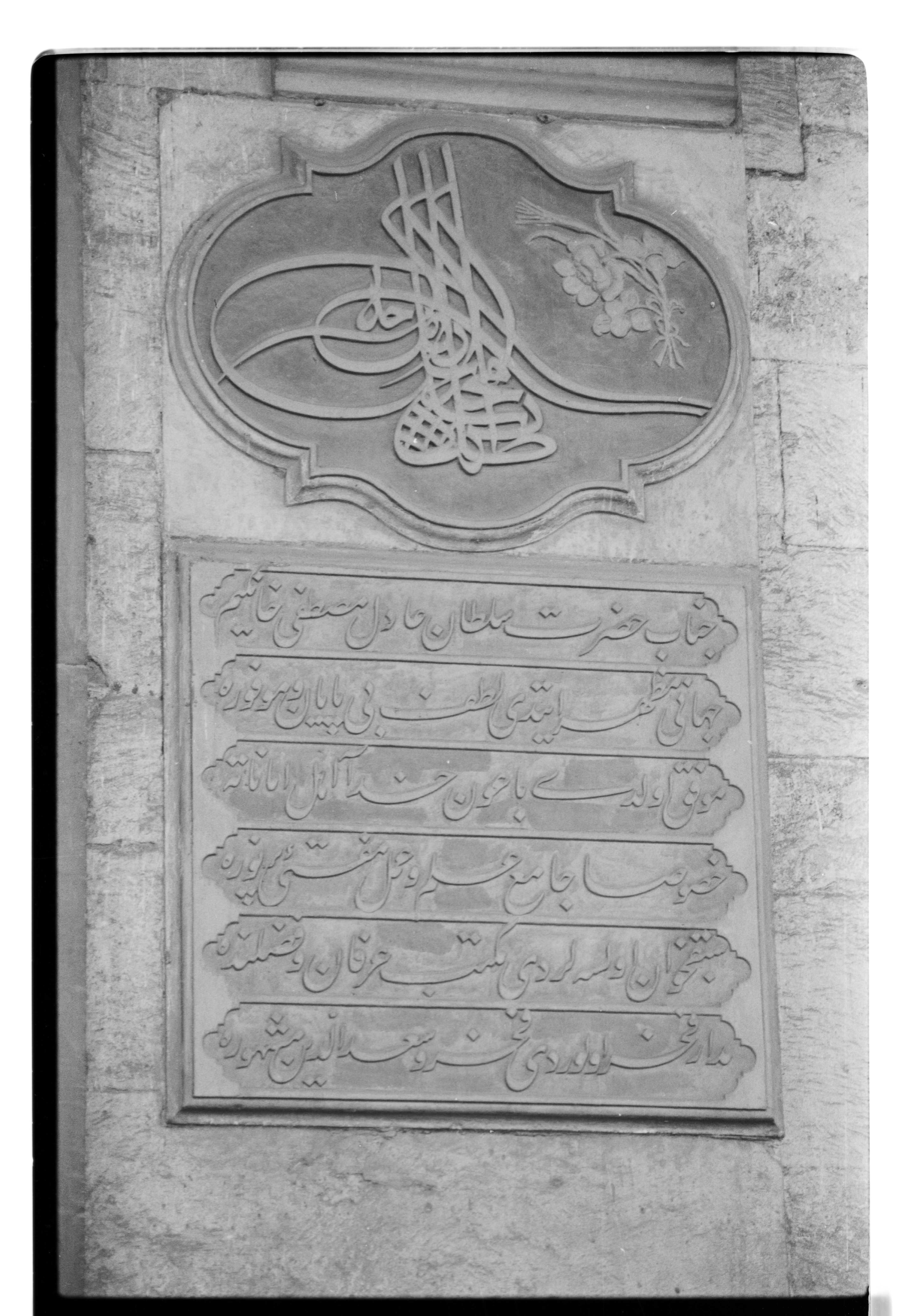 Nişancı Mehmed Paşa Camii'nin giriş kapısının sağındaki kitabe