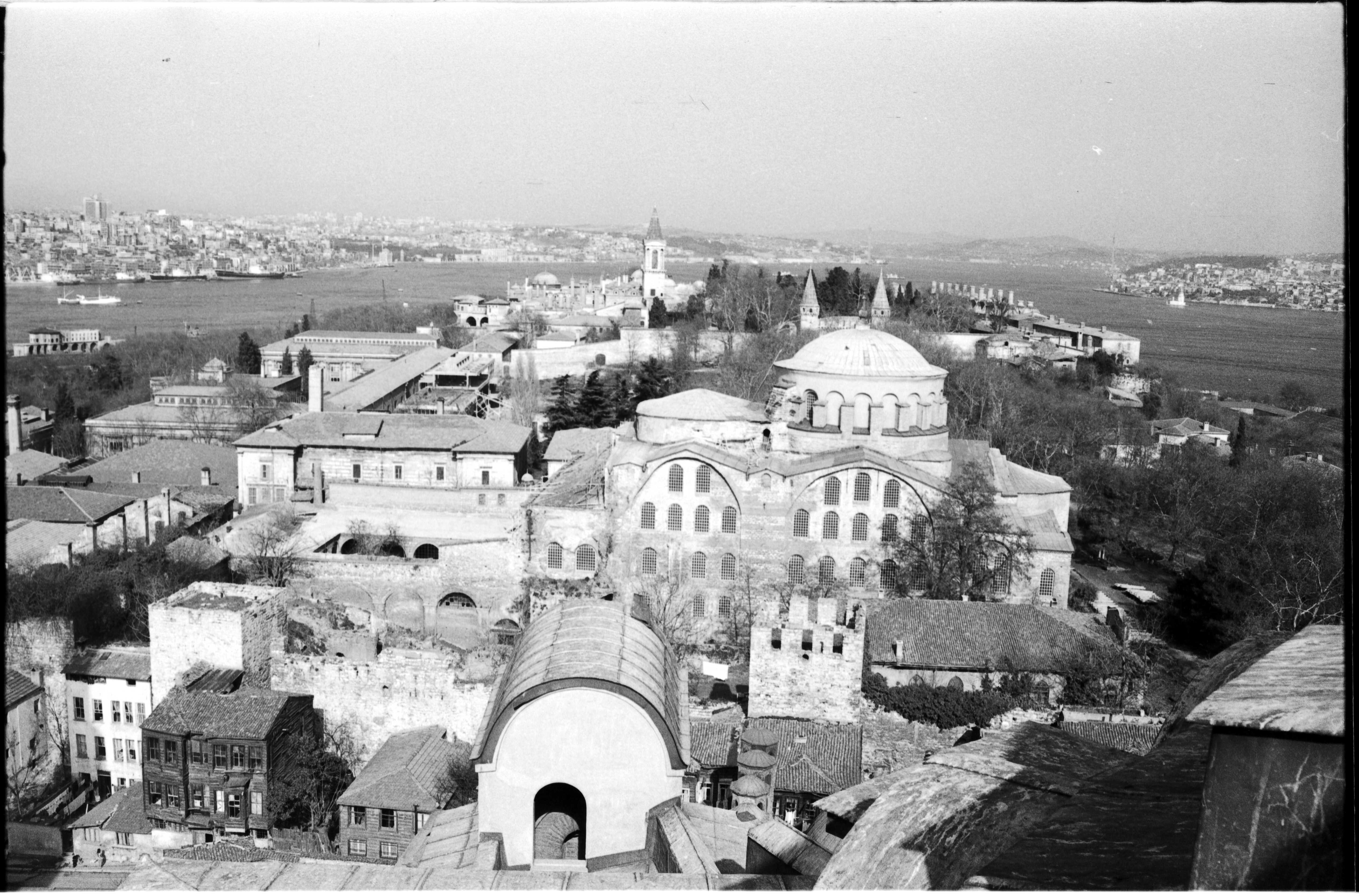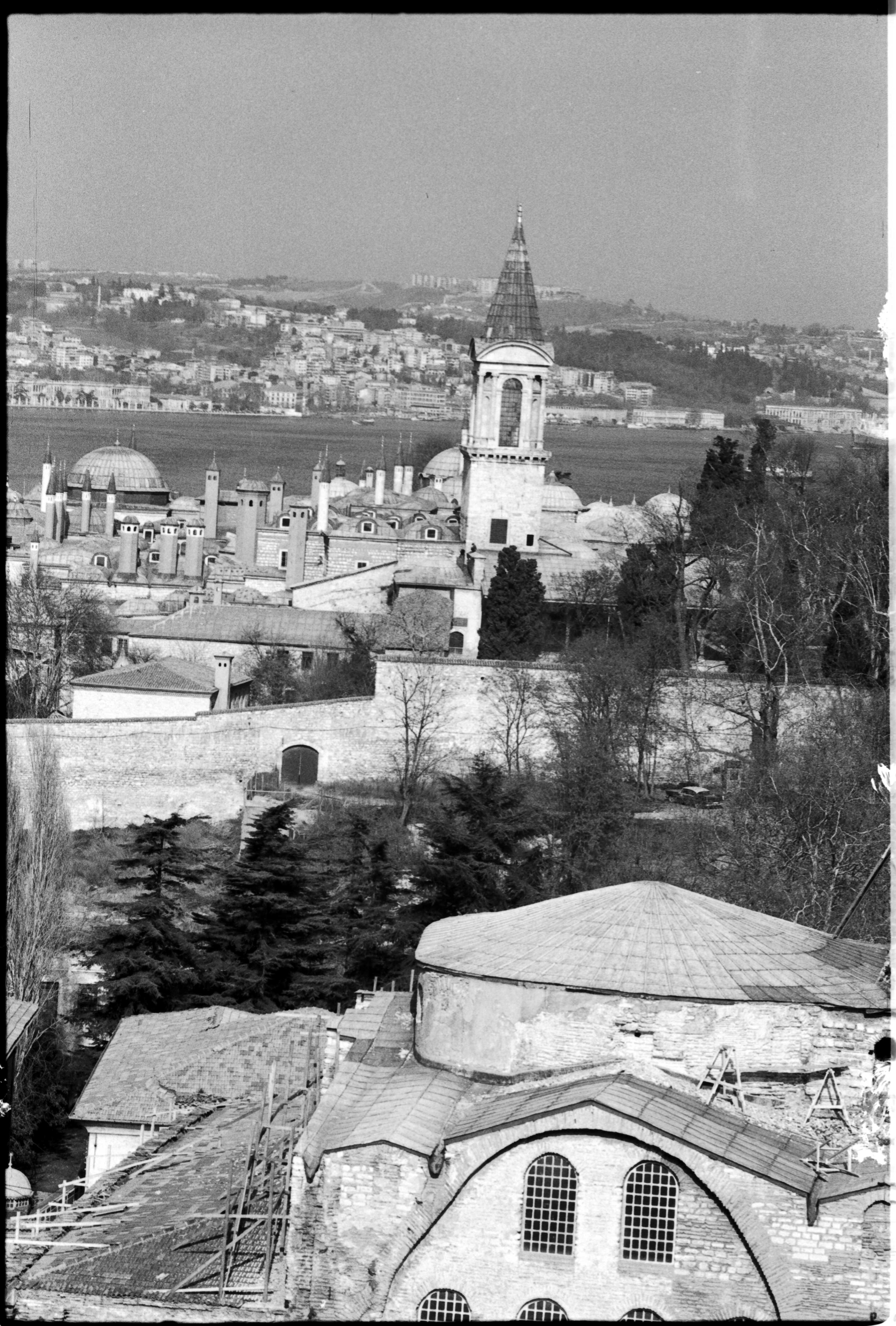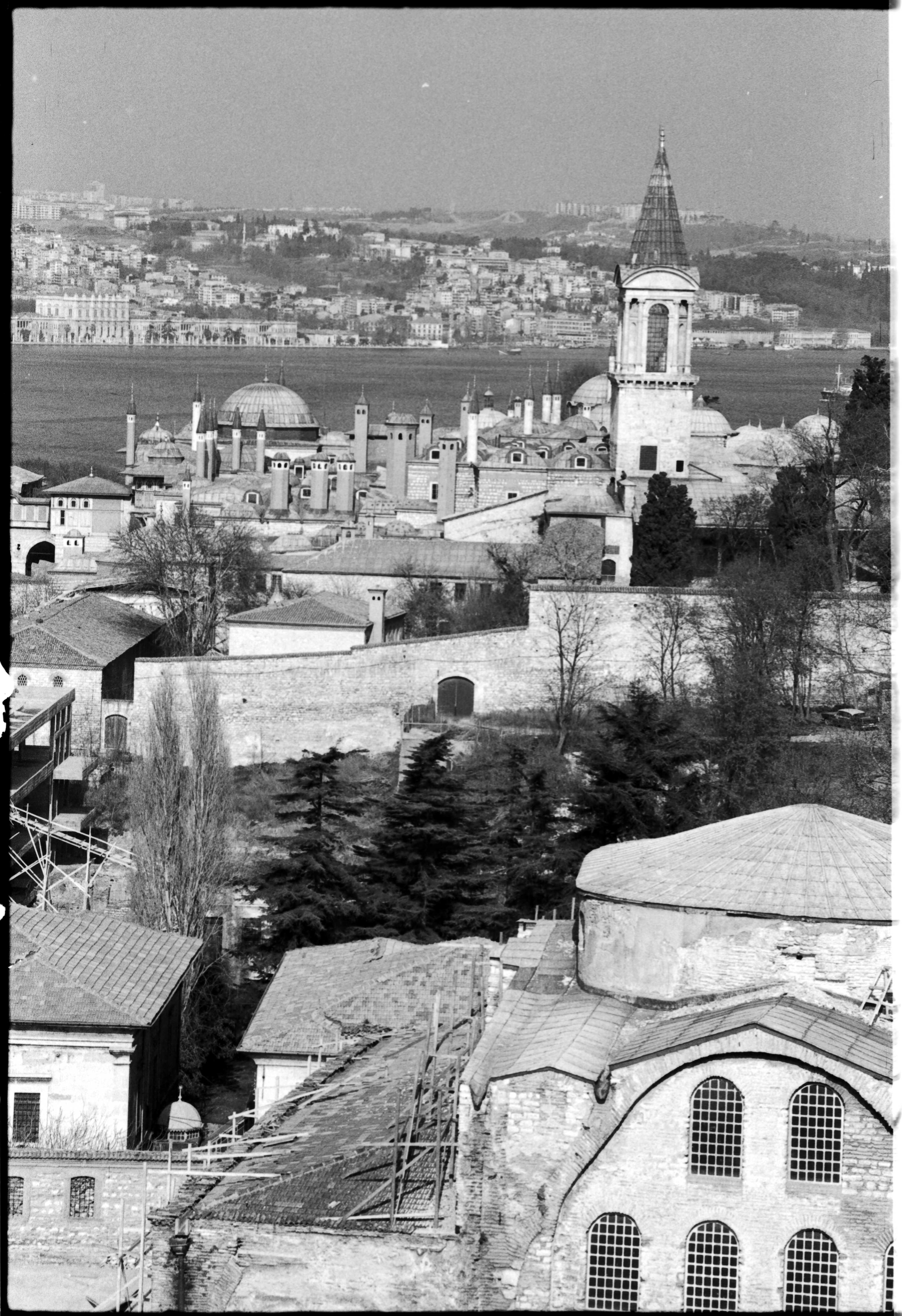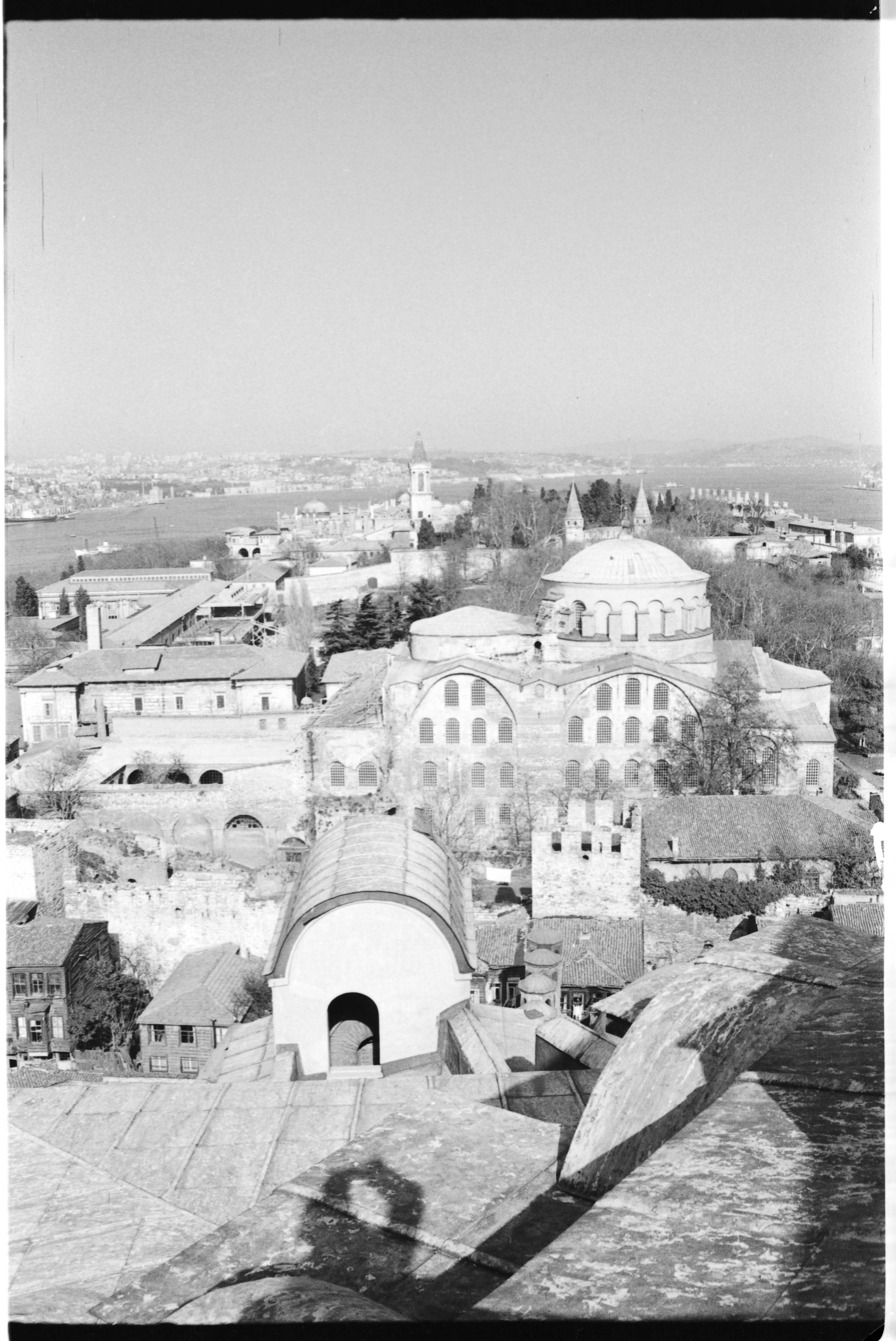 Ayasofya Camii'nin minaresinden St. Irene Kilisesi ve Topkapı Sarayı'nın görünüşü