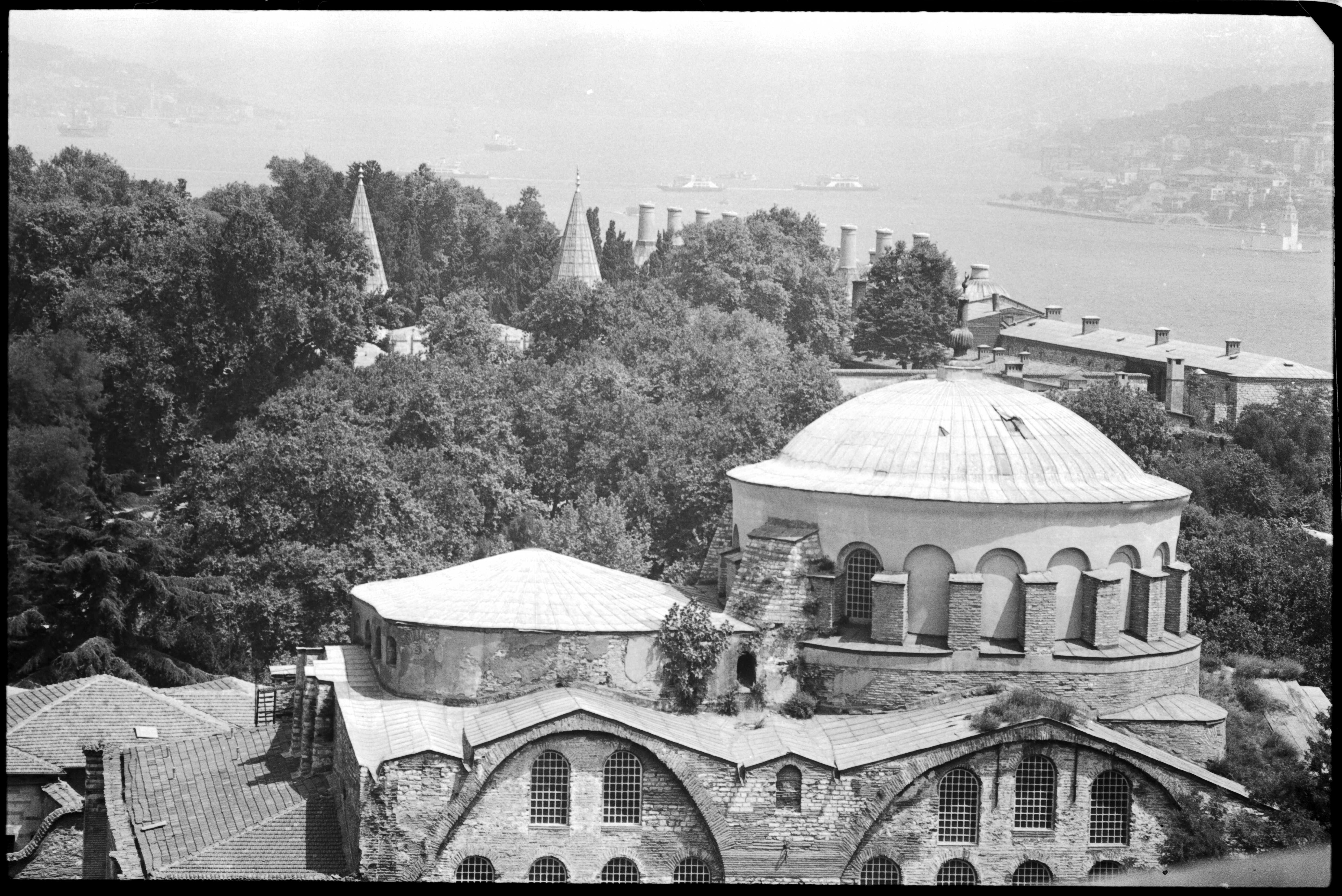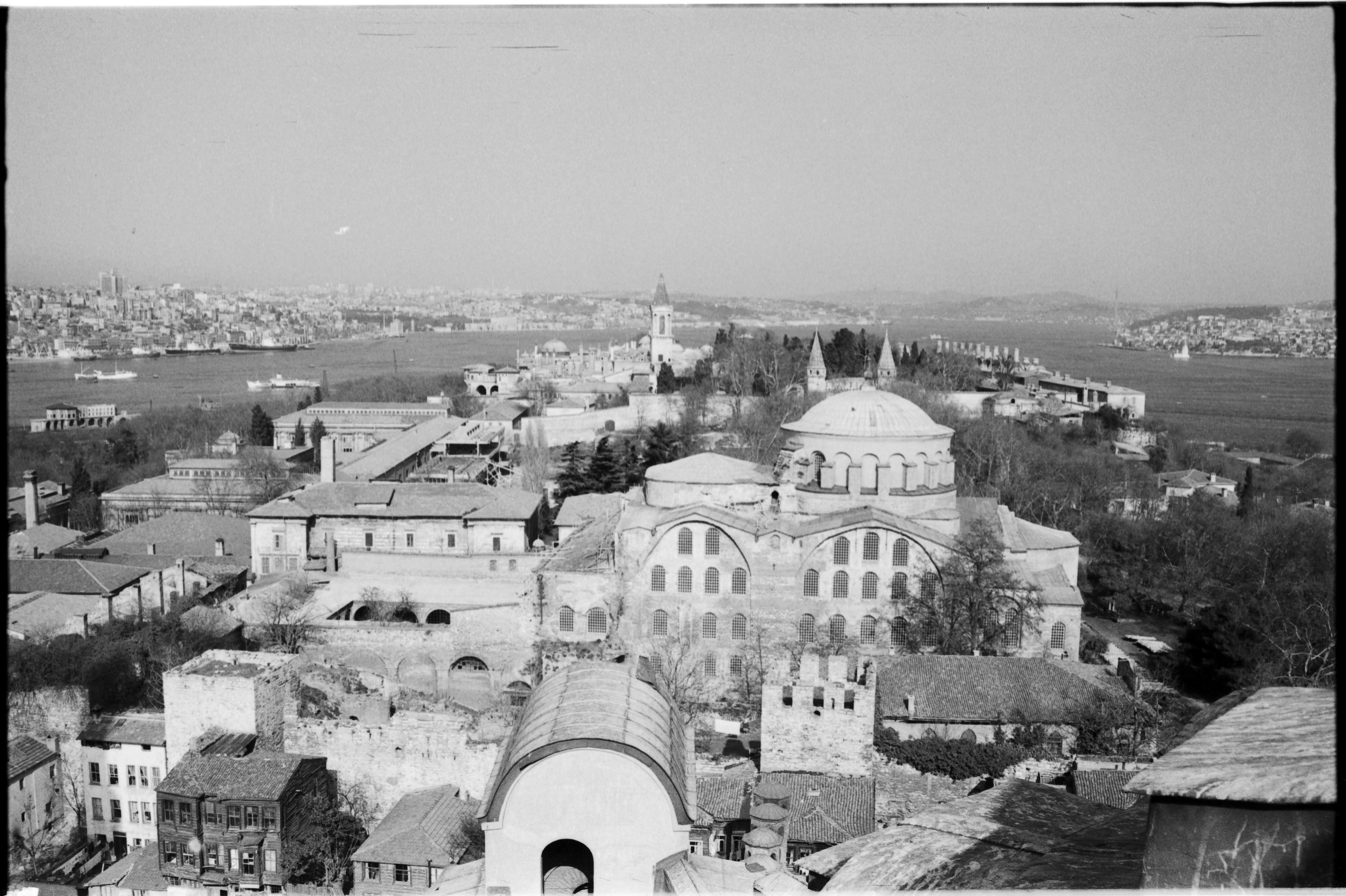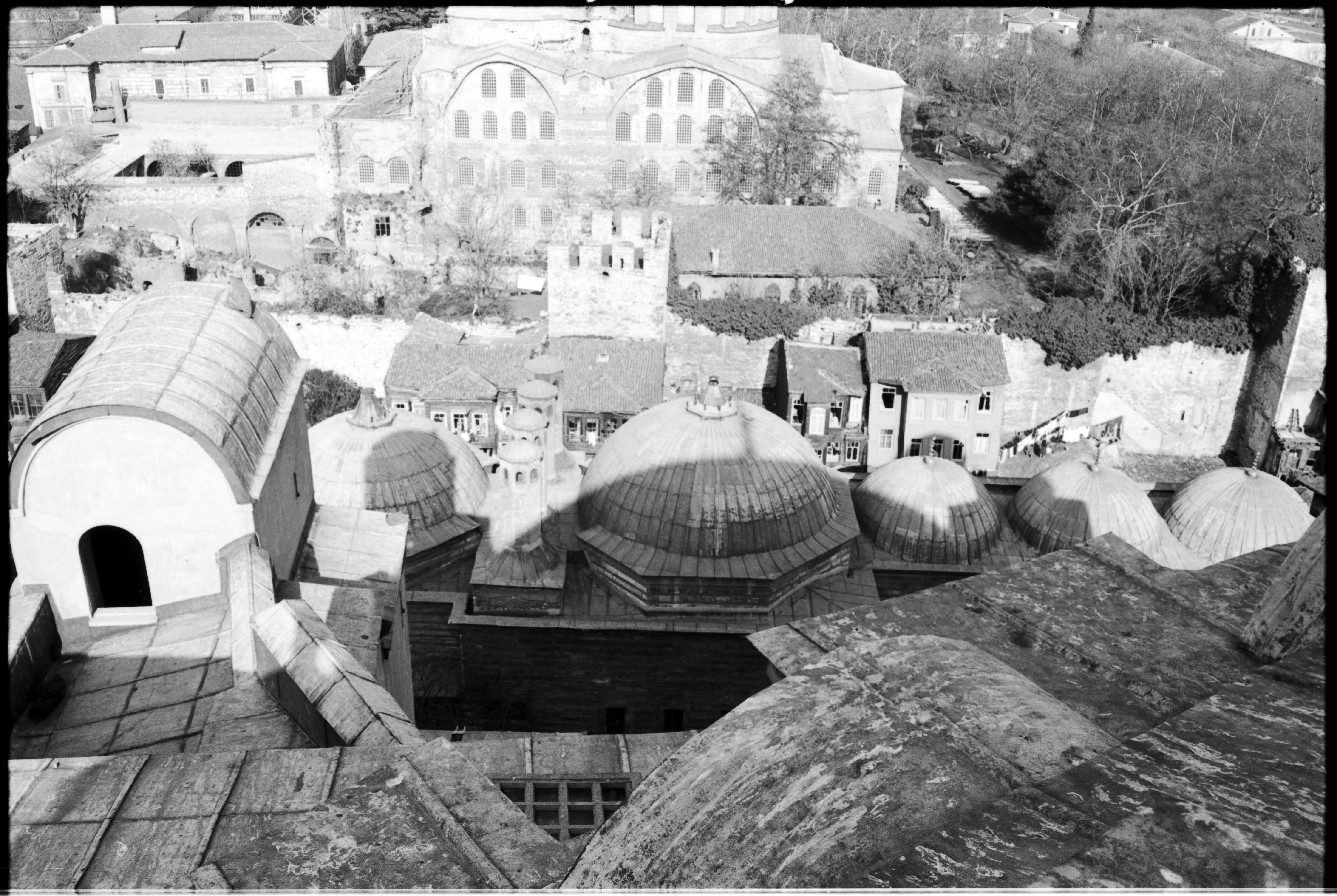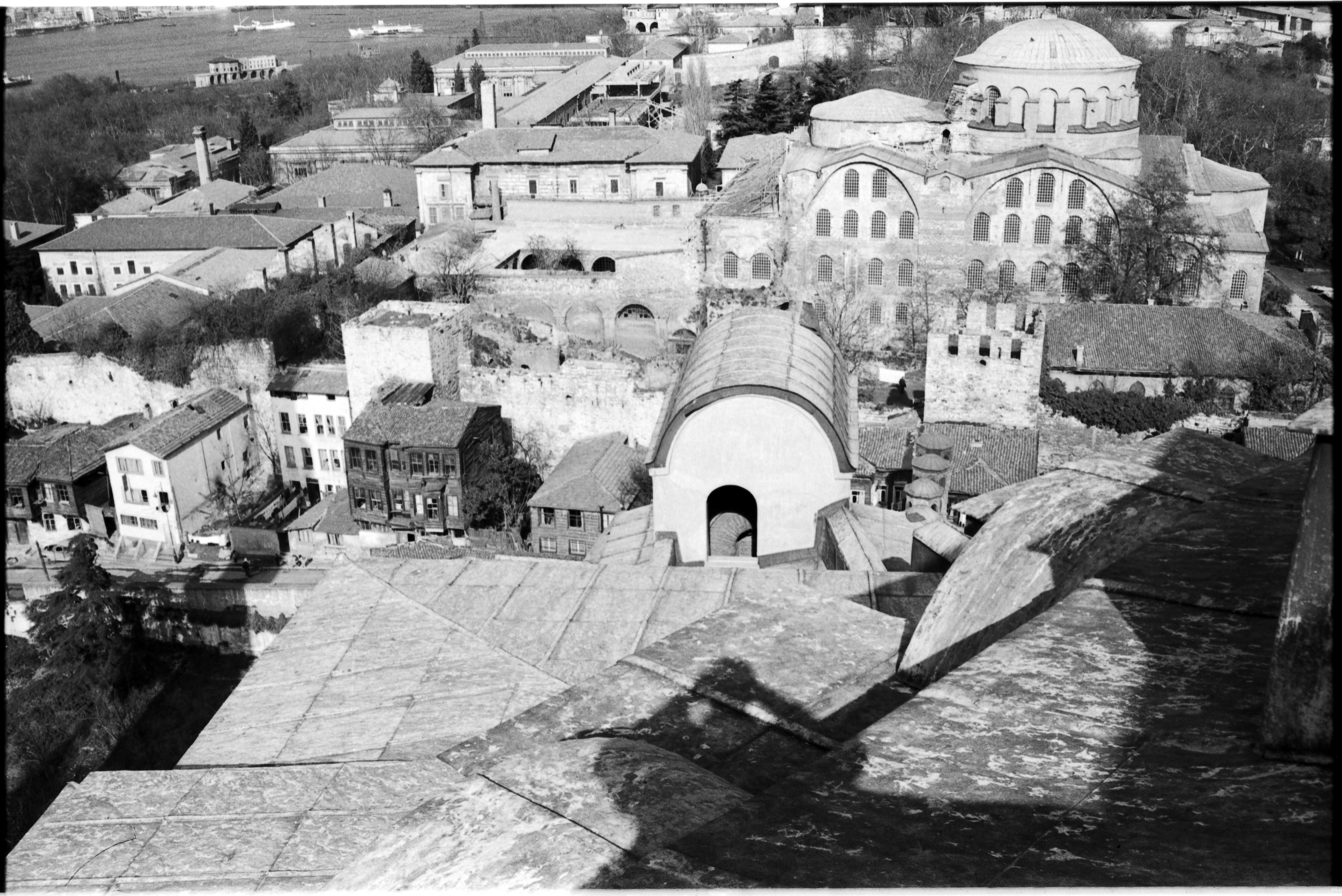 Ayasofya Camii'nin minaresinden St. Irene Kilisesi ve Topkapı Sarayı'nın görünüşü