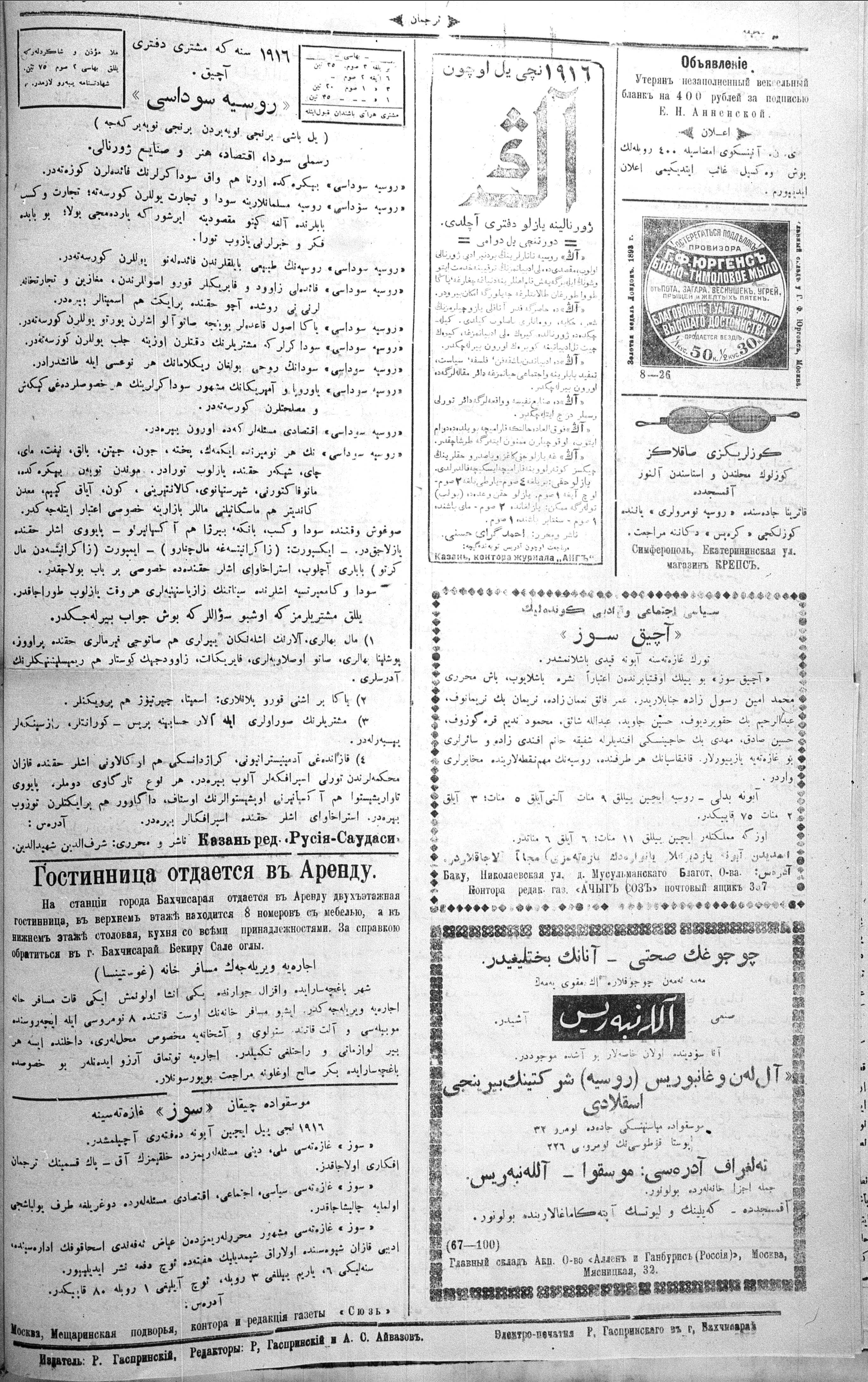 Turkish-Russian newspaper published in Crimea by İsmail Gaspıralı.