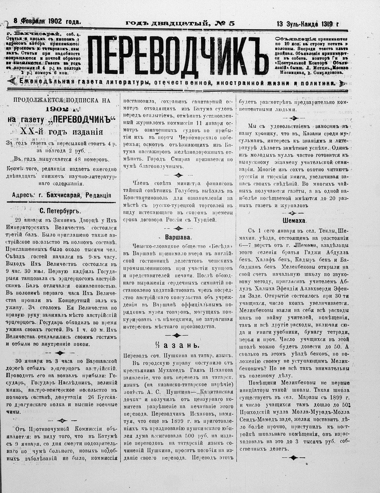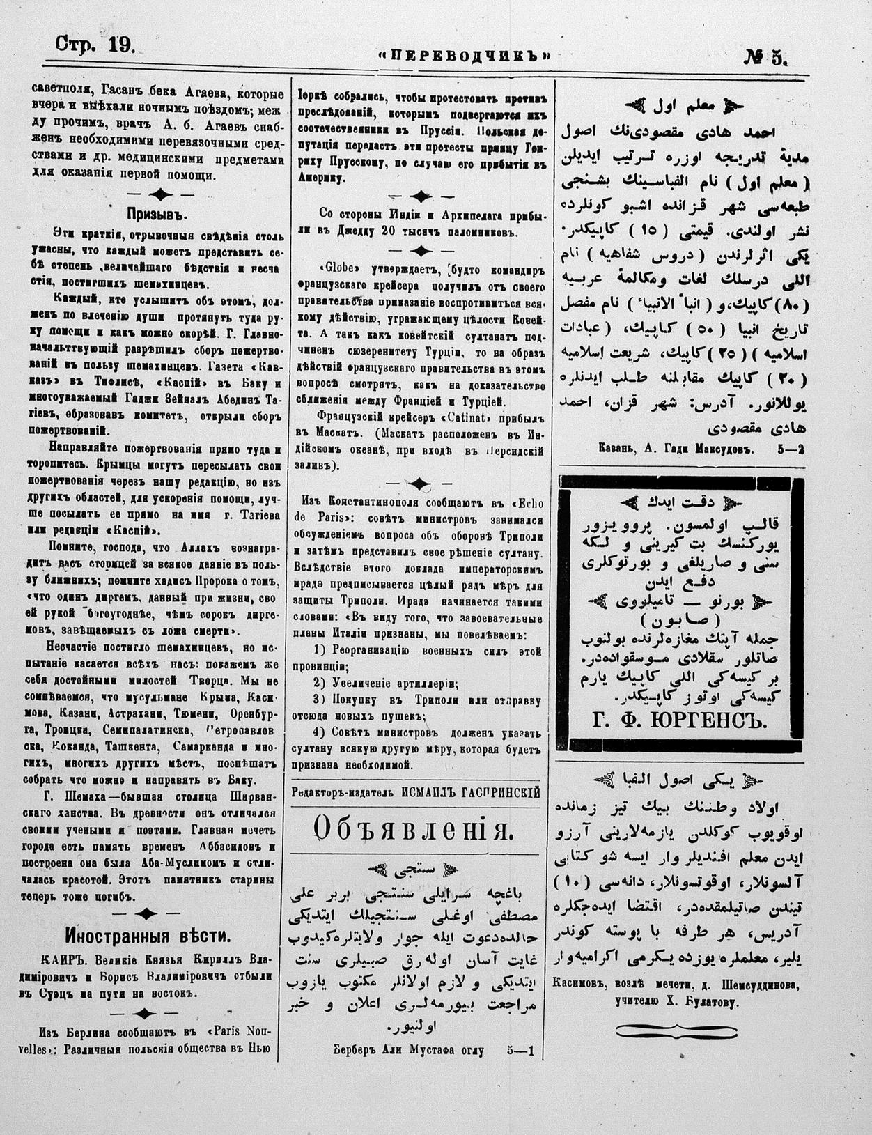 Turkish-Russian newspaper published in Crimea by İsmail Gaspıralı.