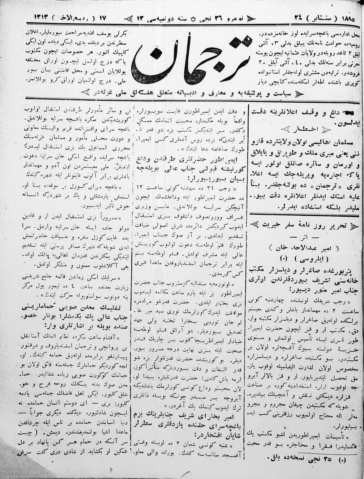 The name of the newspaper changed to Tercüman-ı Ahval-i Zaman in 1905. In 1909, it started to be published under its first name, Tercüman.