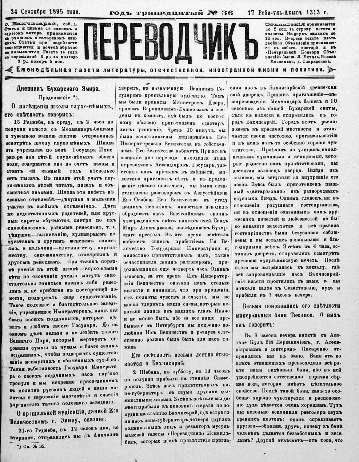 Turkish-Russian newspaper published in Crimea by İsmail Gaspıralı.