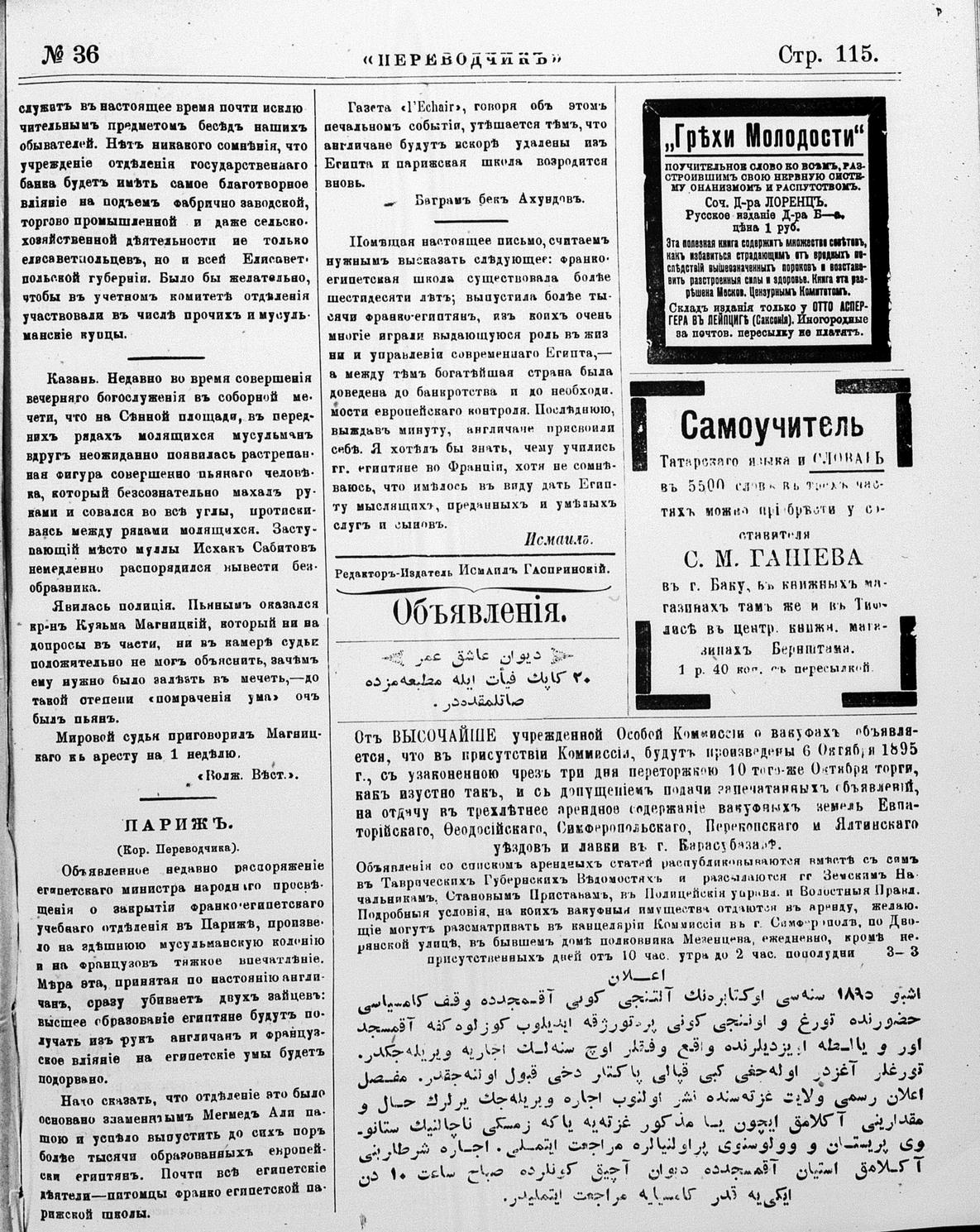 Different spelling of the author name: Gaspıralı, İsmail Bey, 1851-1914.