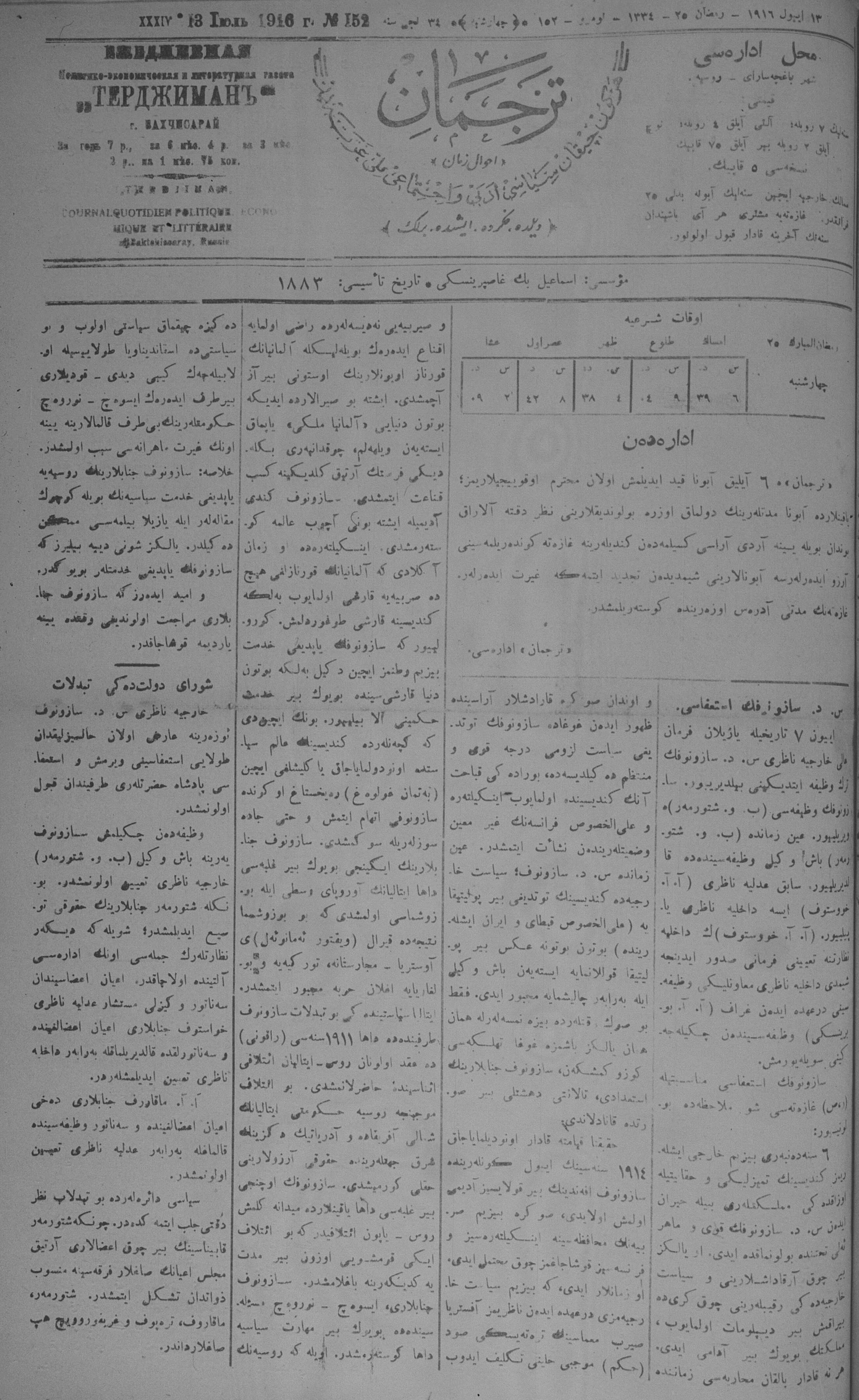 Tercüman, 13 July 1916 Year 34 No 152