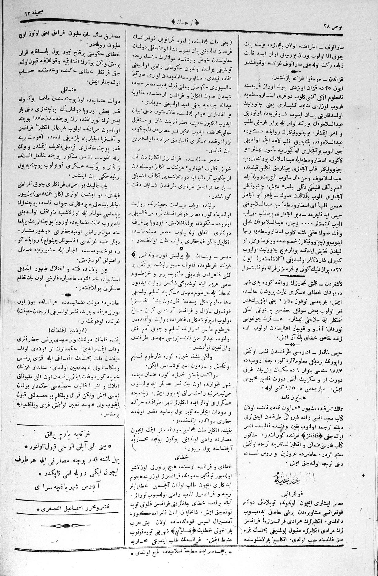 The name of the newspaper changed to Tercüman-ı Ahval-i Zaman in 1905. In 1909, it started to be published under its first name, Tercüman.