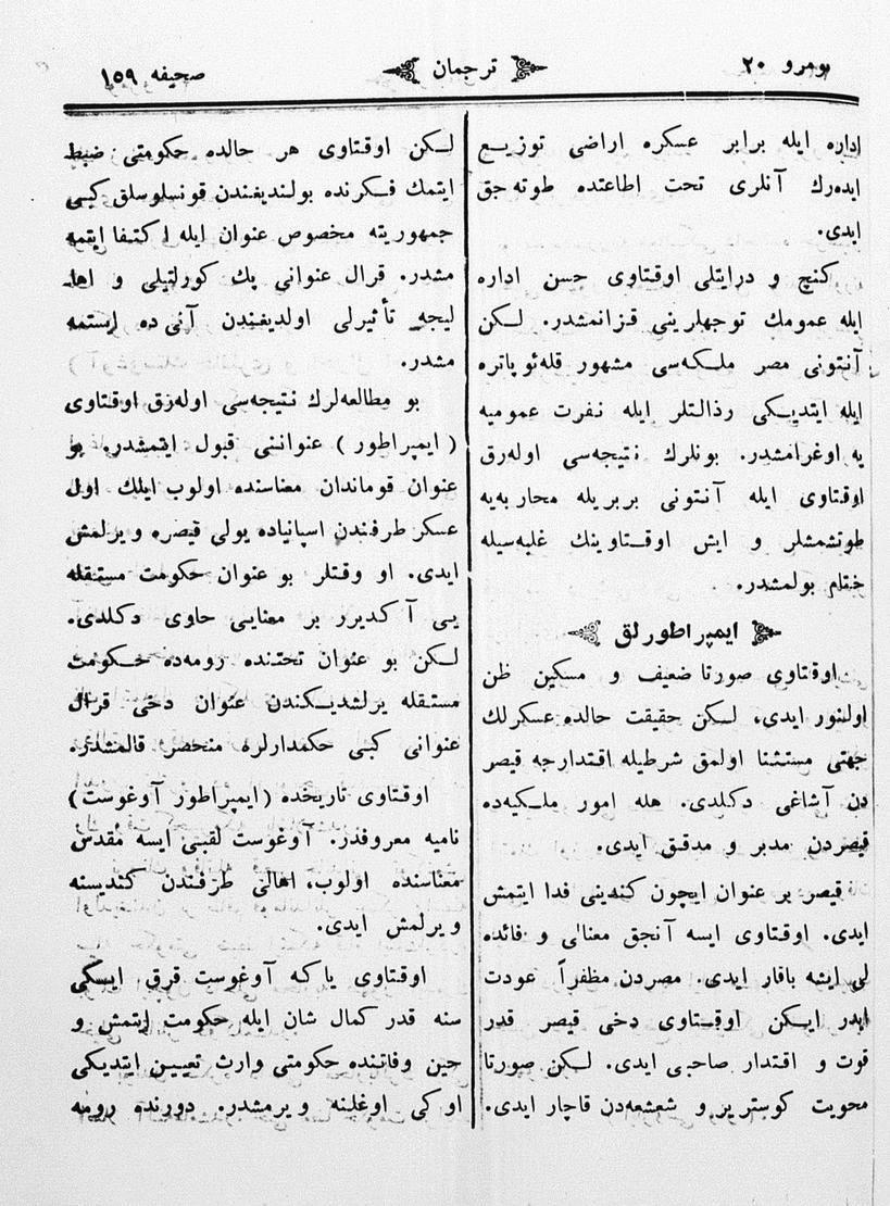 The name of the newspaper changed to Tercüman-ı Ahval-i Zaman in 1905. In 1909, it started to be published under its first name, Tercüman.