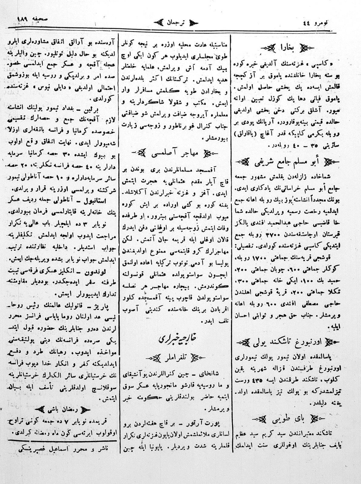 The name of the newspaper changed to Tercüman-ı Ahval-i Zaman in 1905. In 1909, it started to be published under its first name, Tercüman.