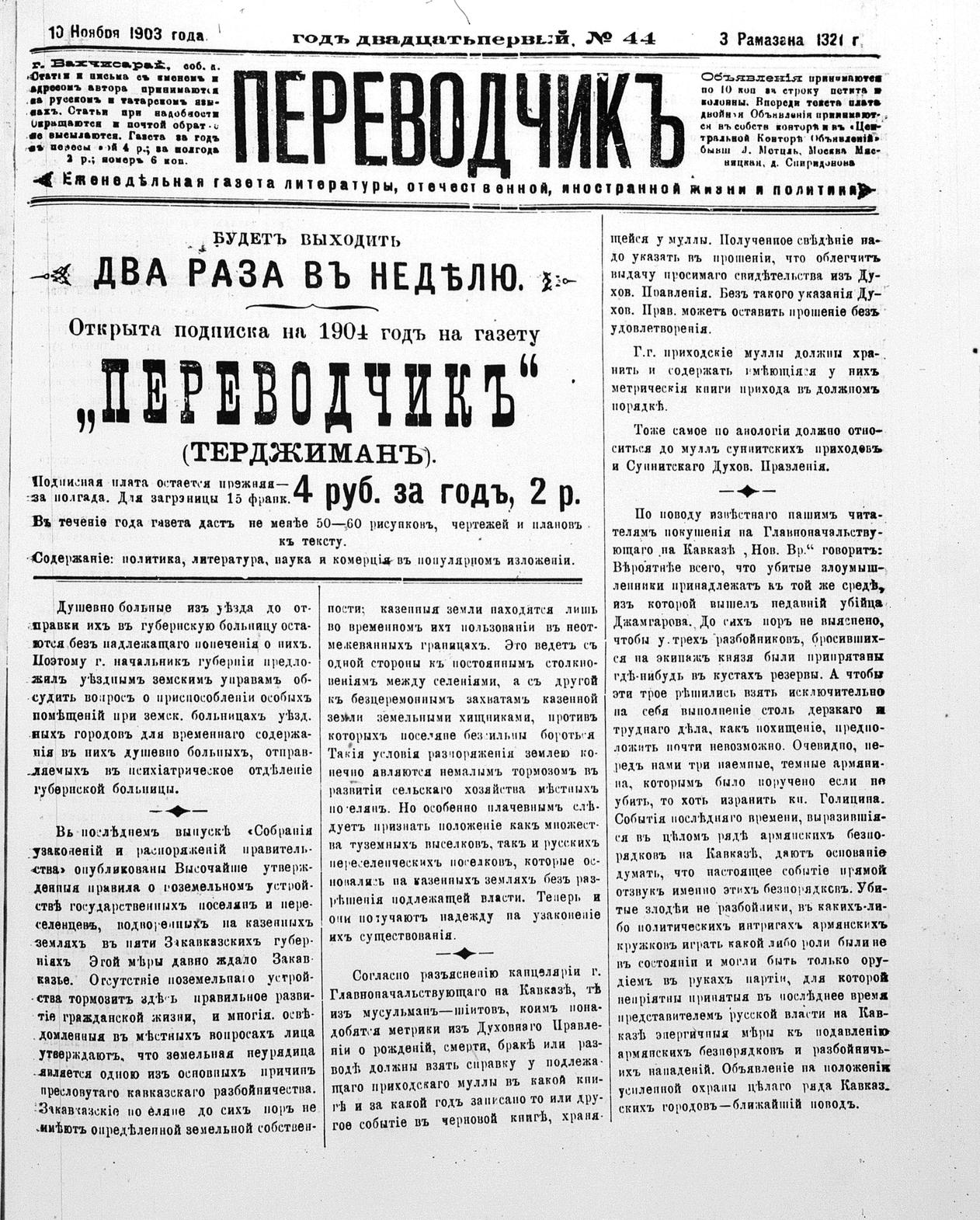 Tercüman, 10 November 1903 Year 21 No 44