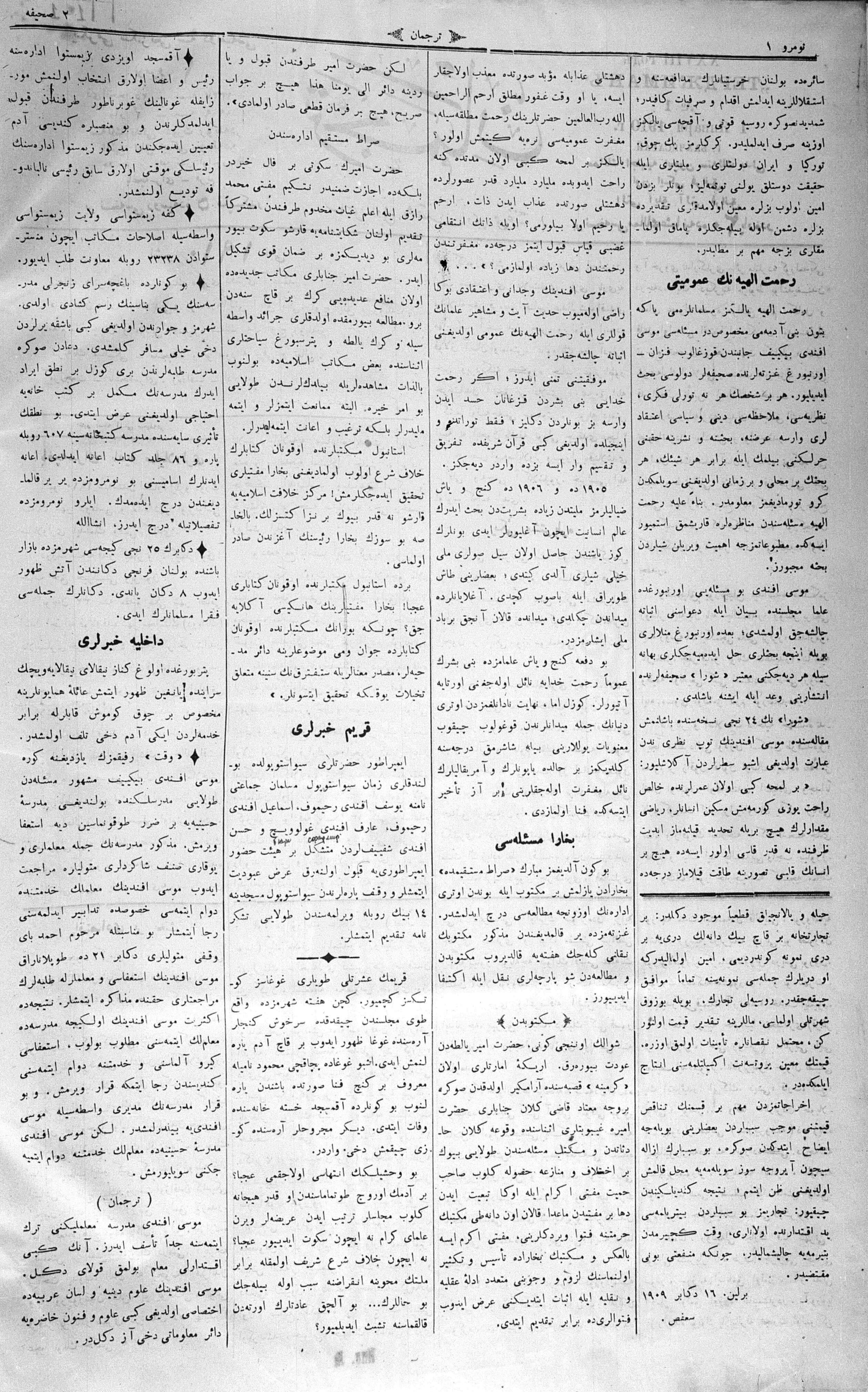 The name of the newspaper changed to Tercüman-ı Ahval-i Zaman in 1905. In 1909, it started to be published under its first name, Tercüman.