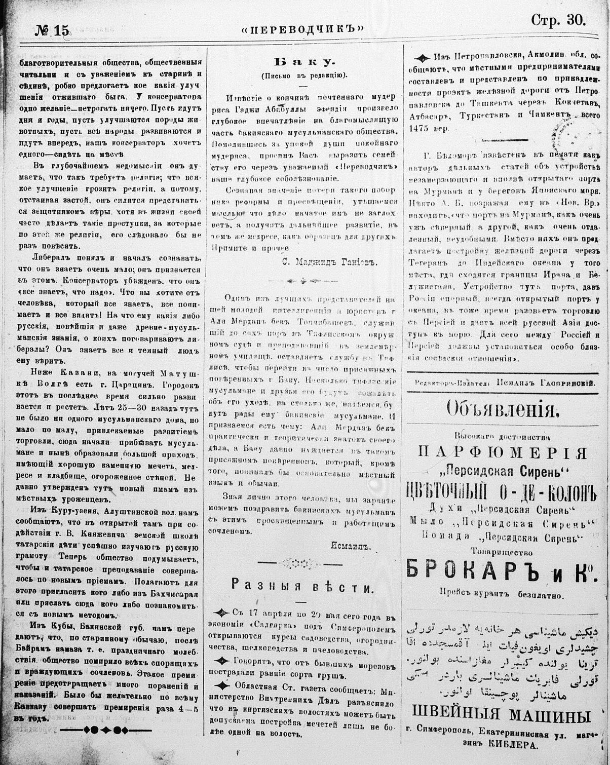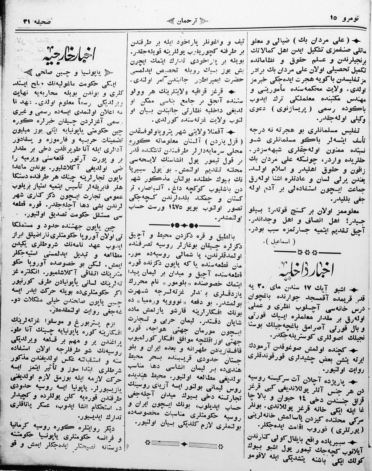 Turkish-Russian newspaper published in Crimea by İsmail Gaspıralı.