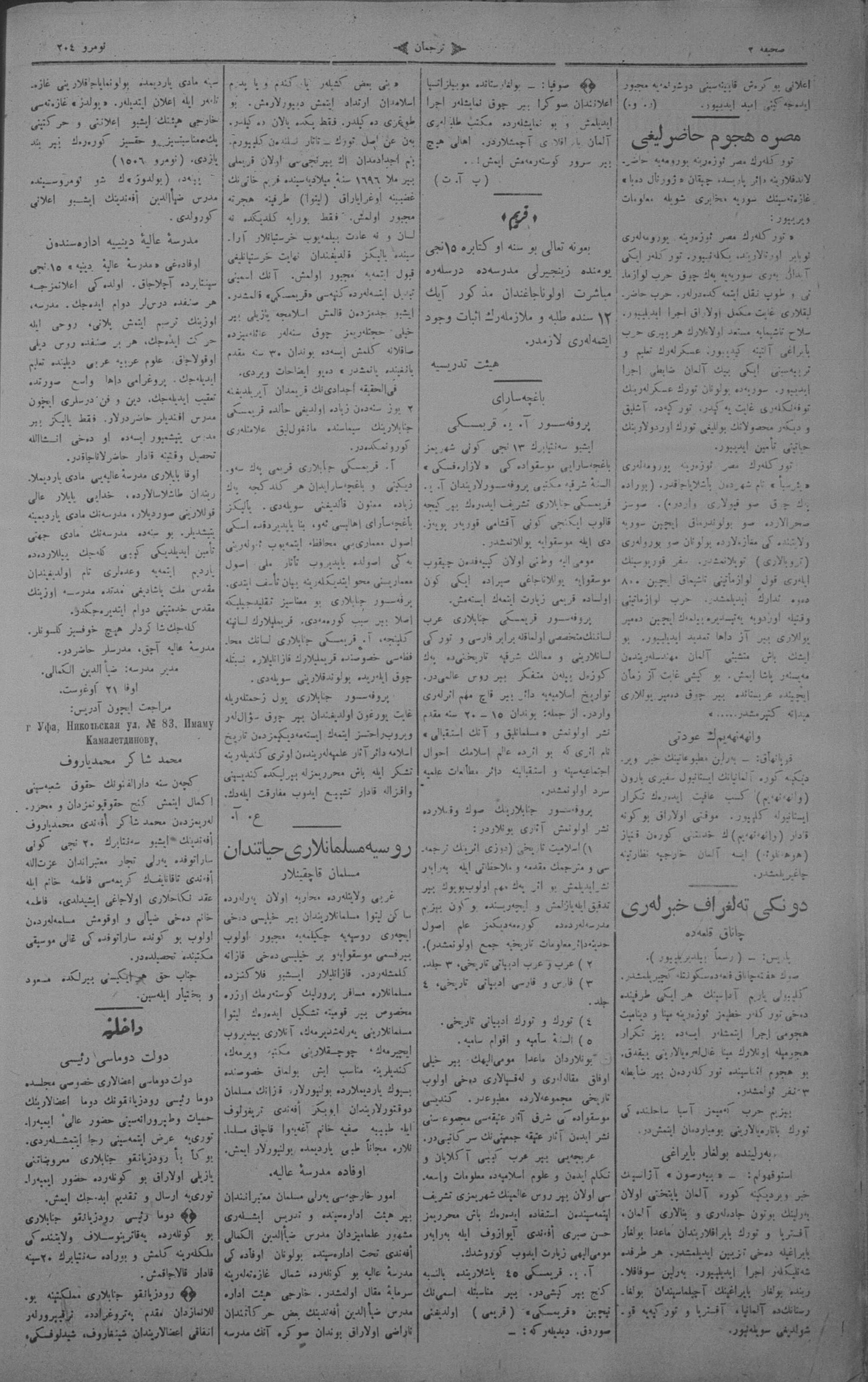The name of the newspaper changed to Tercüman-ı Ahval-i Zaman in 1905. In 1909, it started to be published under its first name, Tercüman.
