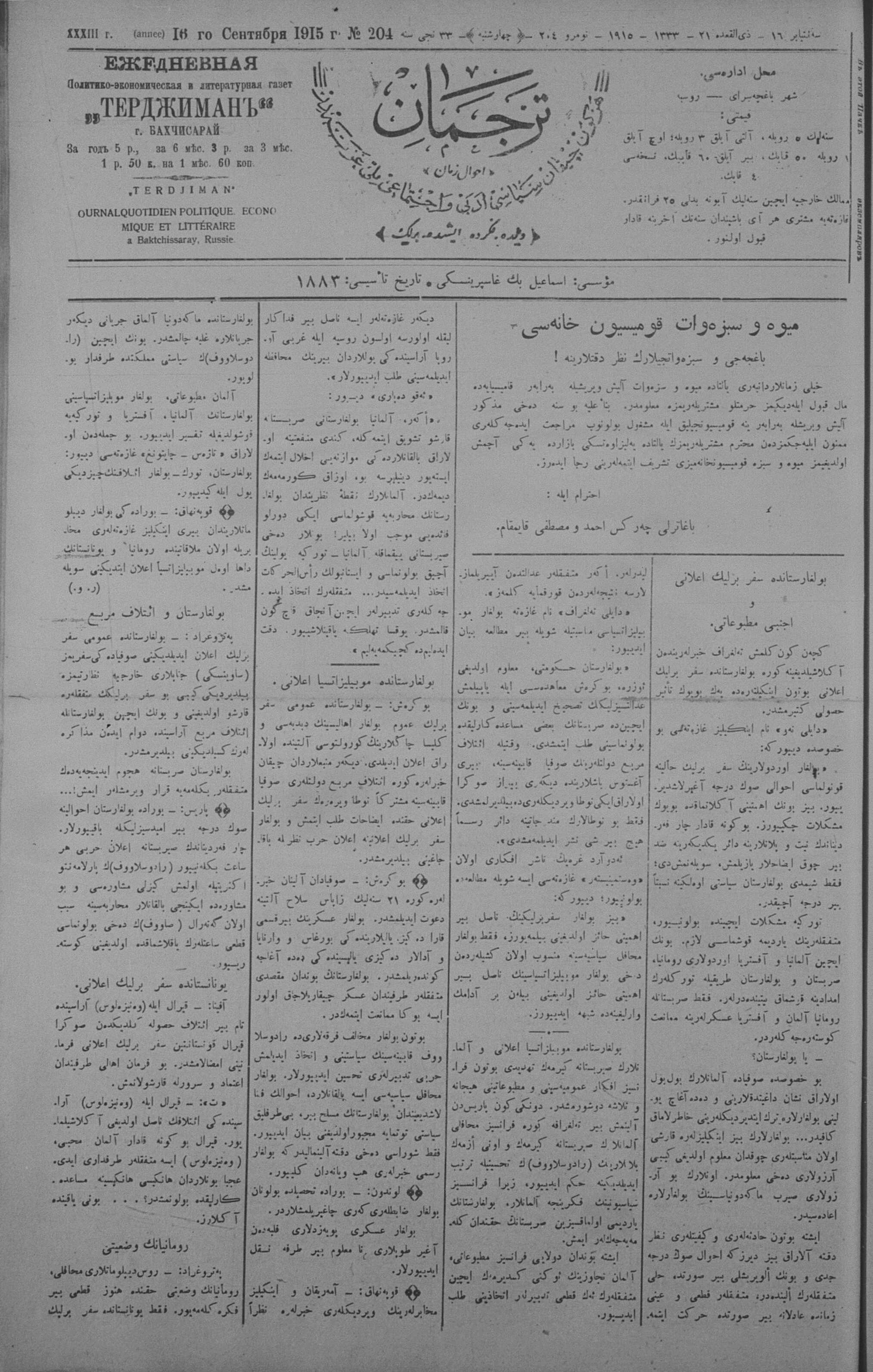 Turkish-Russian newspaper published in Crimea by İsmail Gaspıralı.