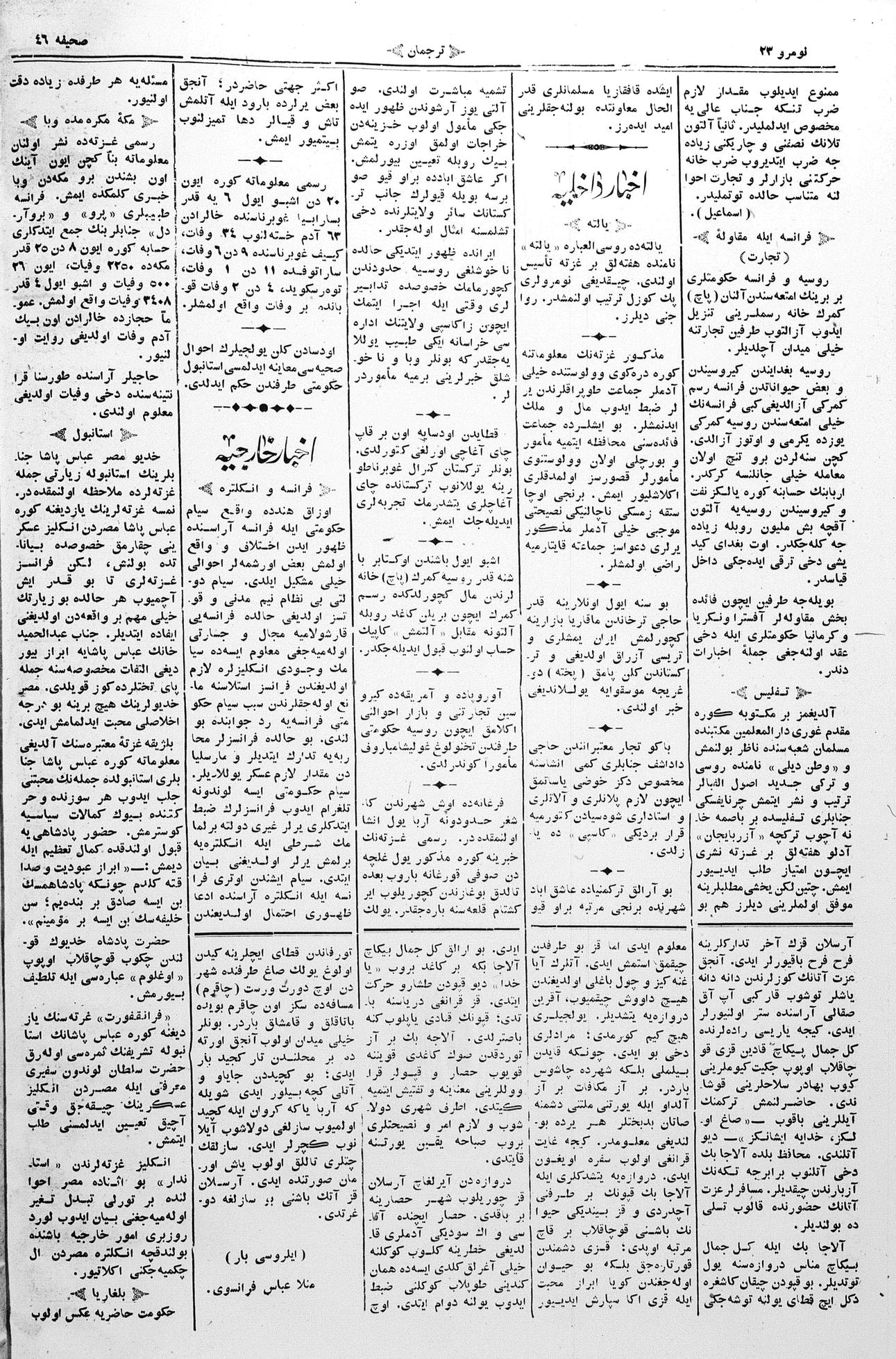 The name of the newspaper changed to Tercüman-ı Ahval-i Zaman in 1905. In 1909, it started to be published under its first name, Tercüman.