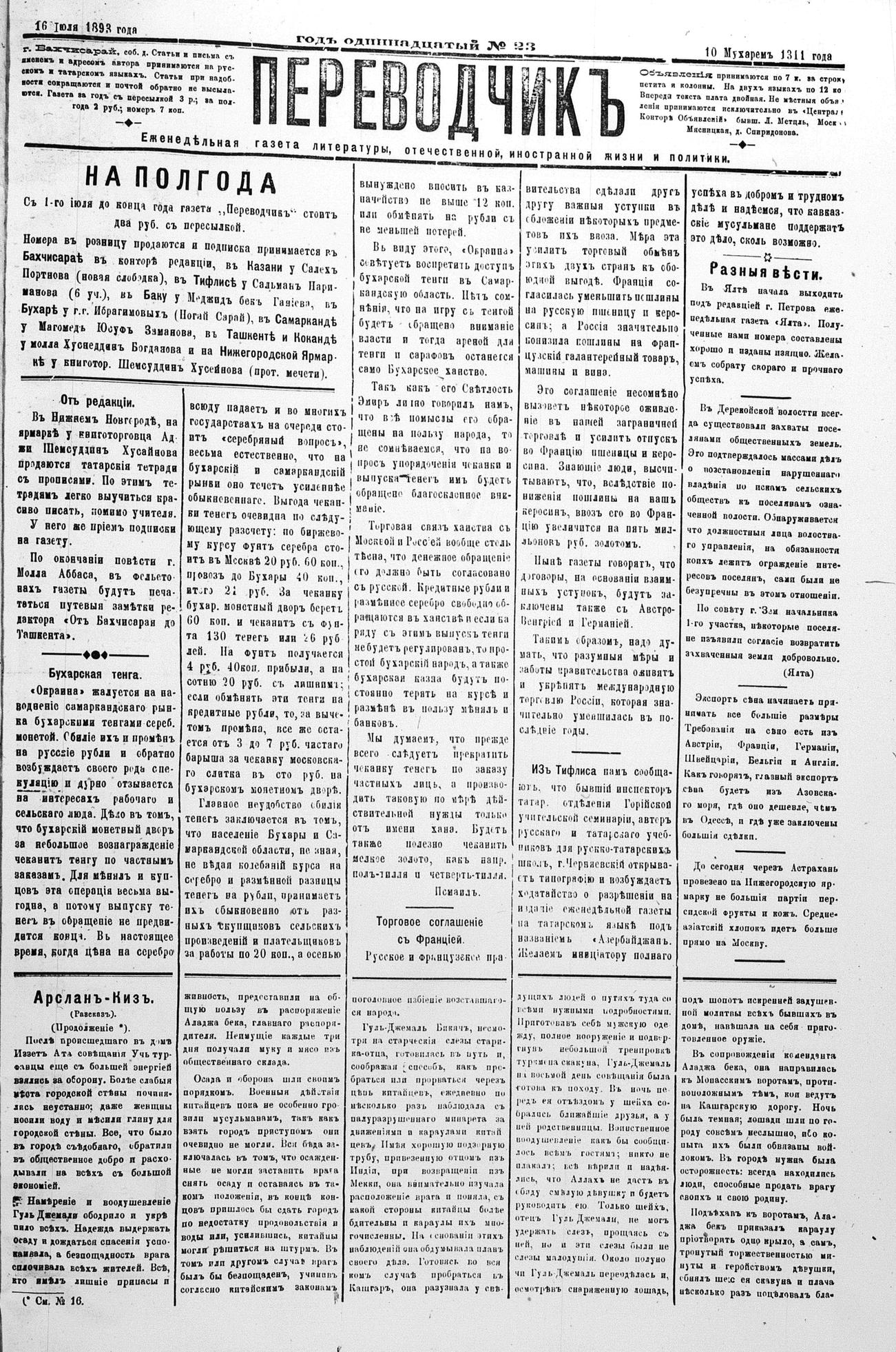 Tercüman, 16 July 1893 Year 11 No 23