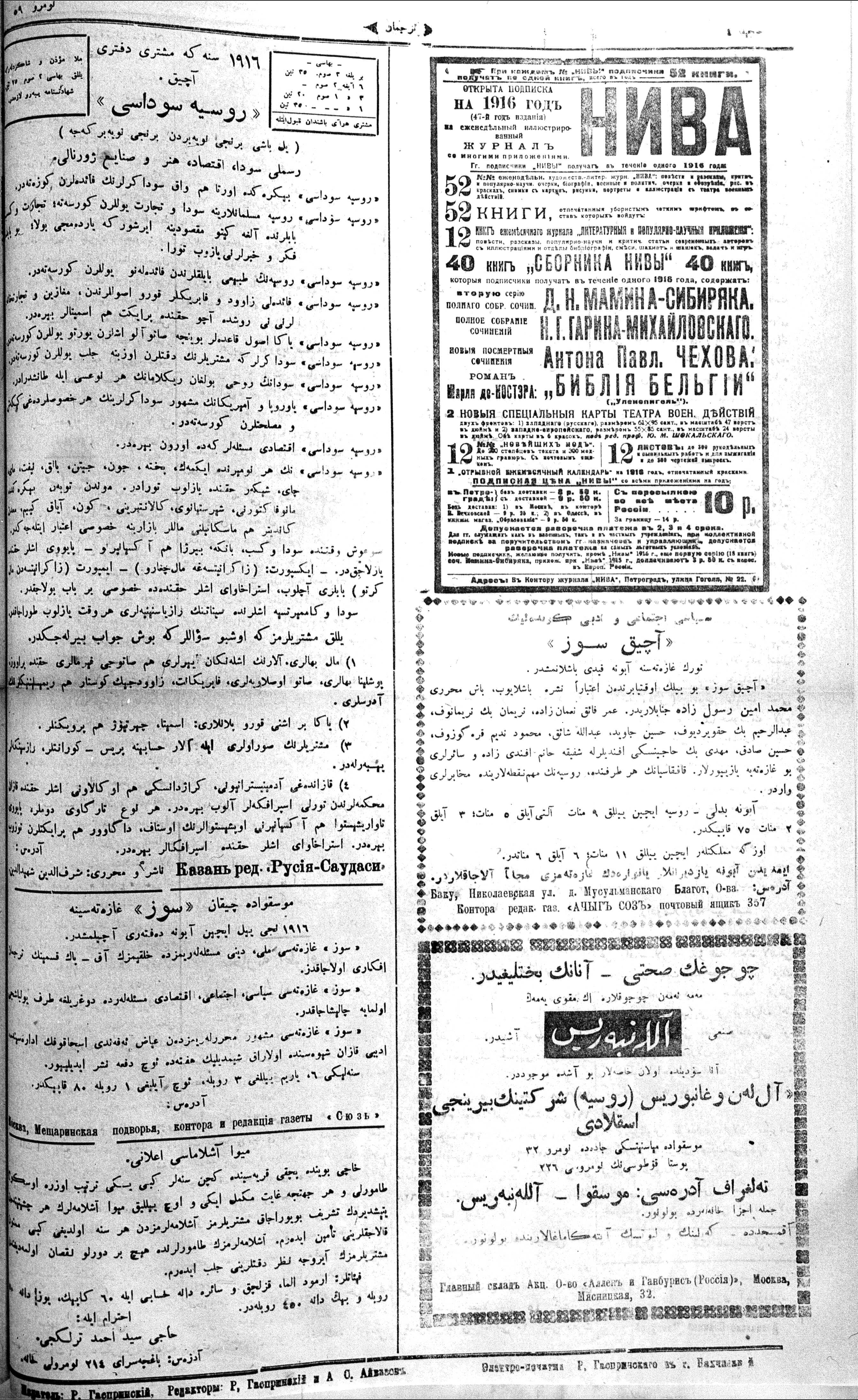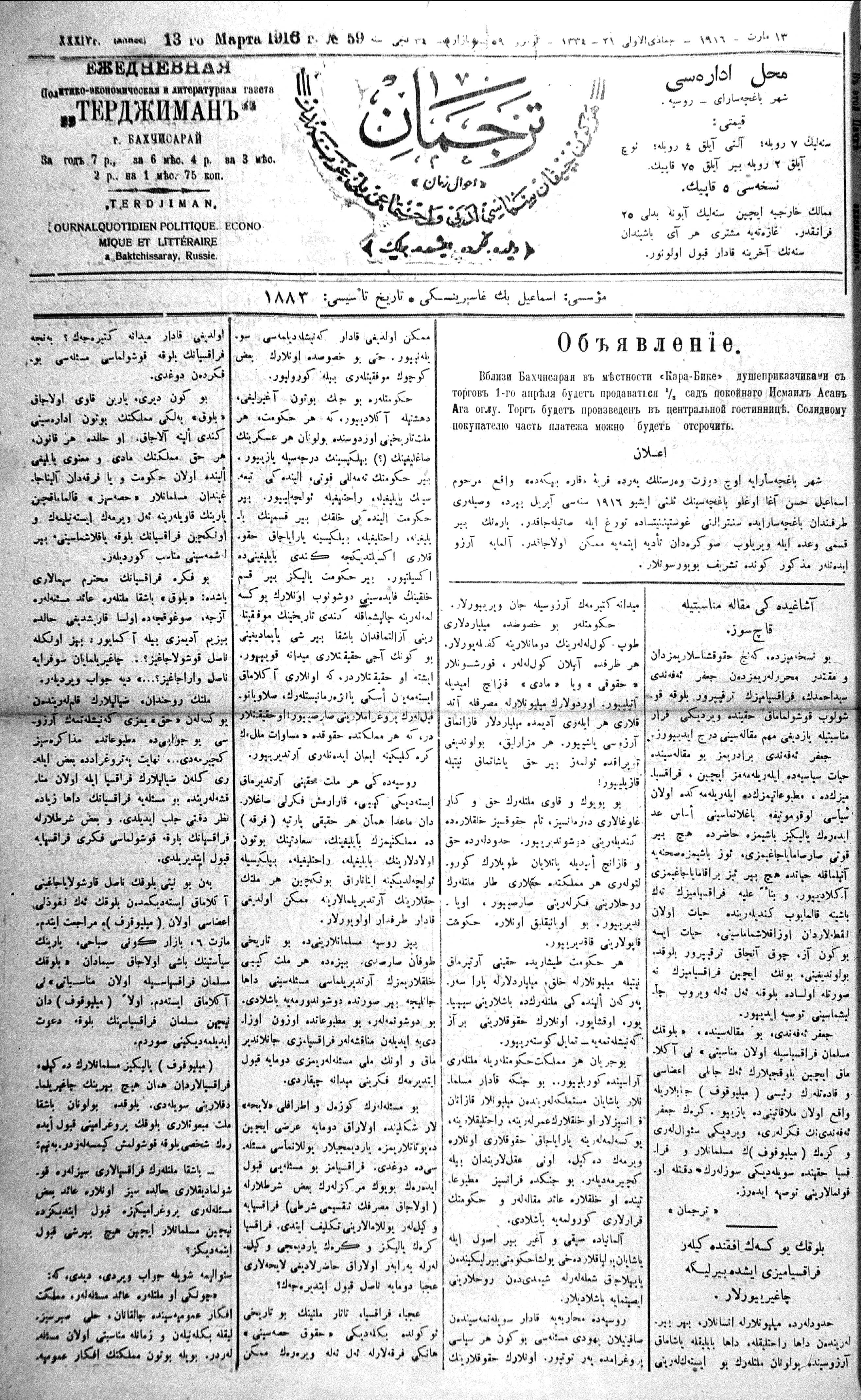 Turkish-Russian newspaper published in Crimea by İsmail Gaspıralı.