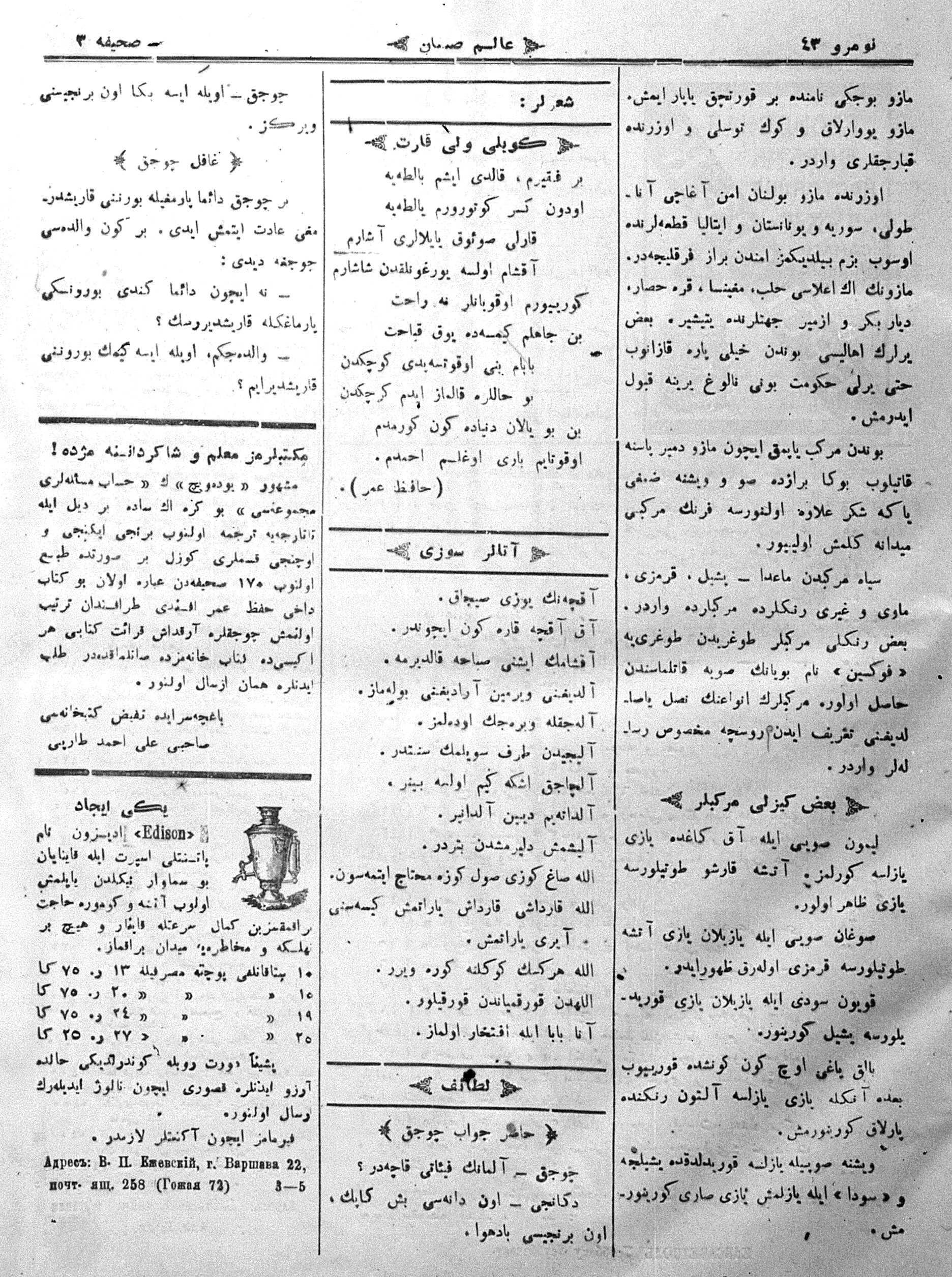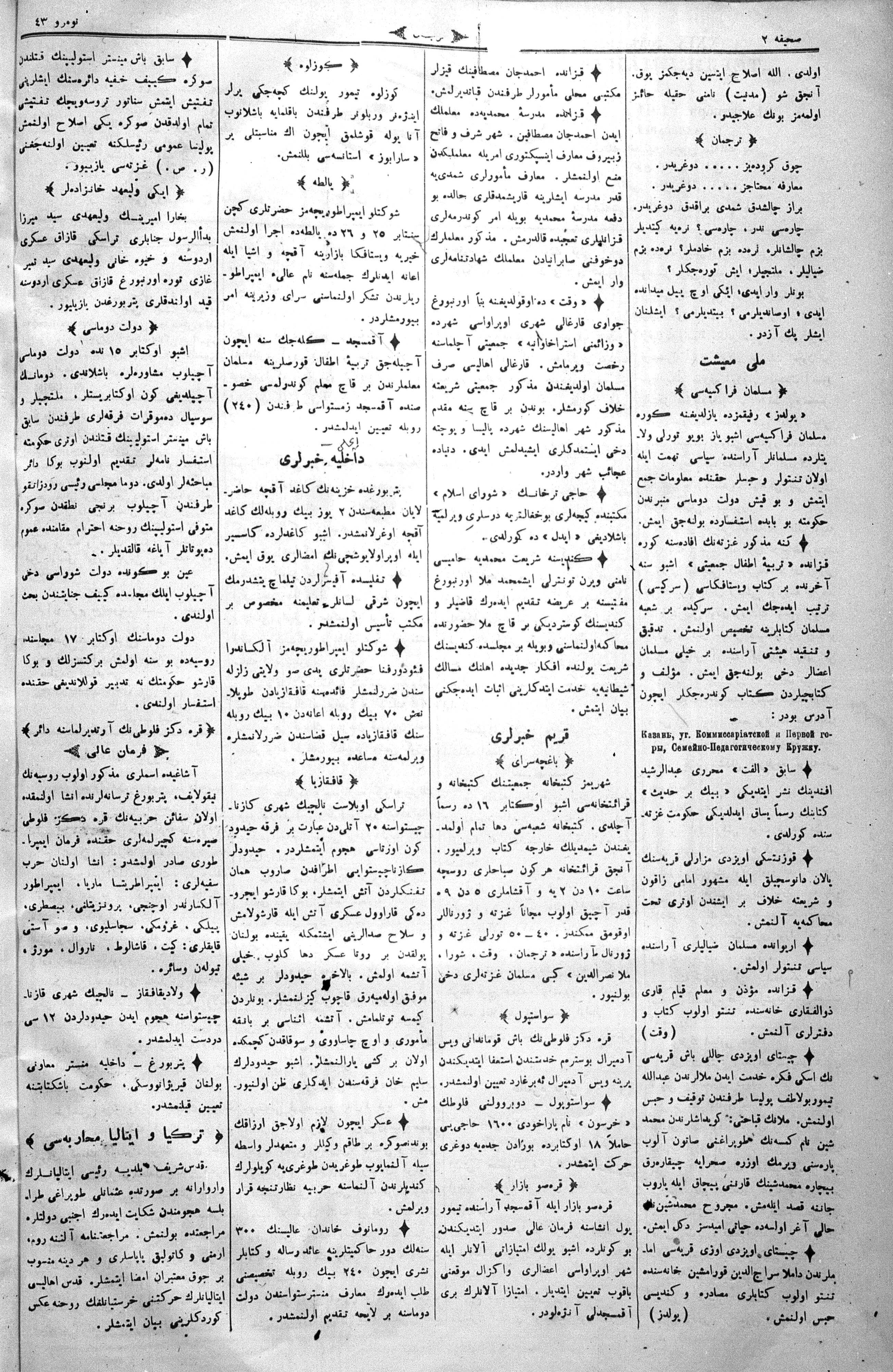 Turkish-Russian newspaper published in Crimea by İsmail Gaspıralı.