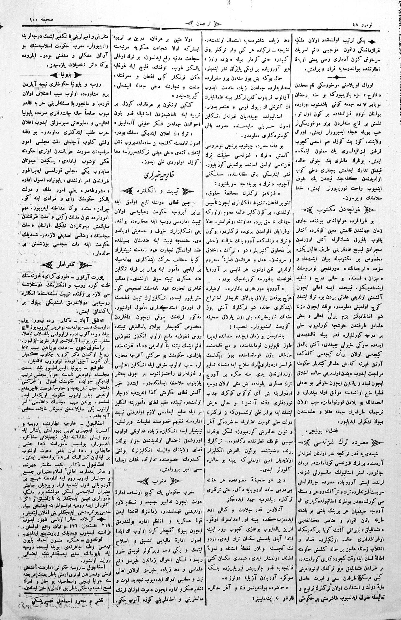 The name of the newspaper changed to Tercüman-ı Ahval-i Zaman in 1905. In 1909, it started to be published under its first name, Tercüman.
