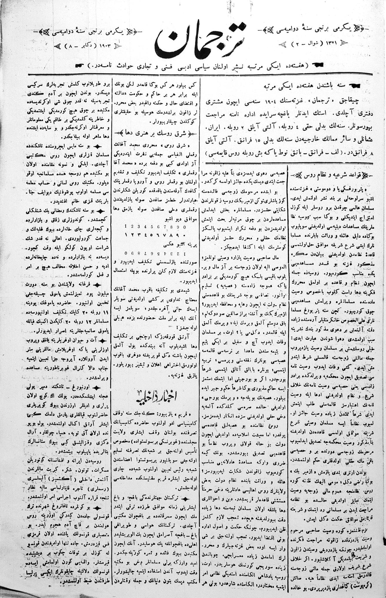 Turkish-Russian newspaper published in Crimea by İsmail Gaspıralı.