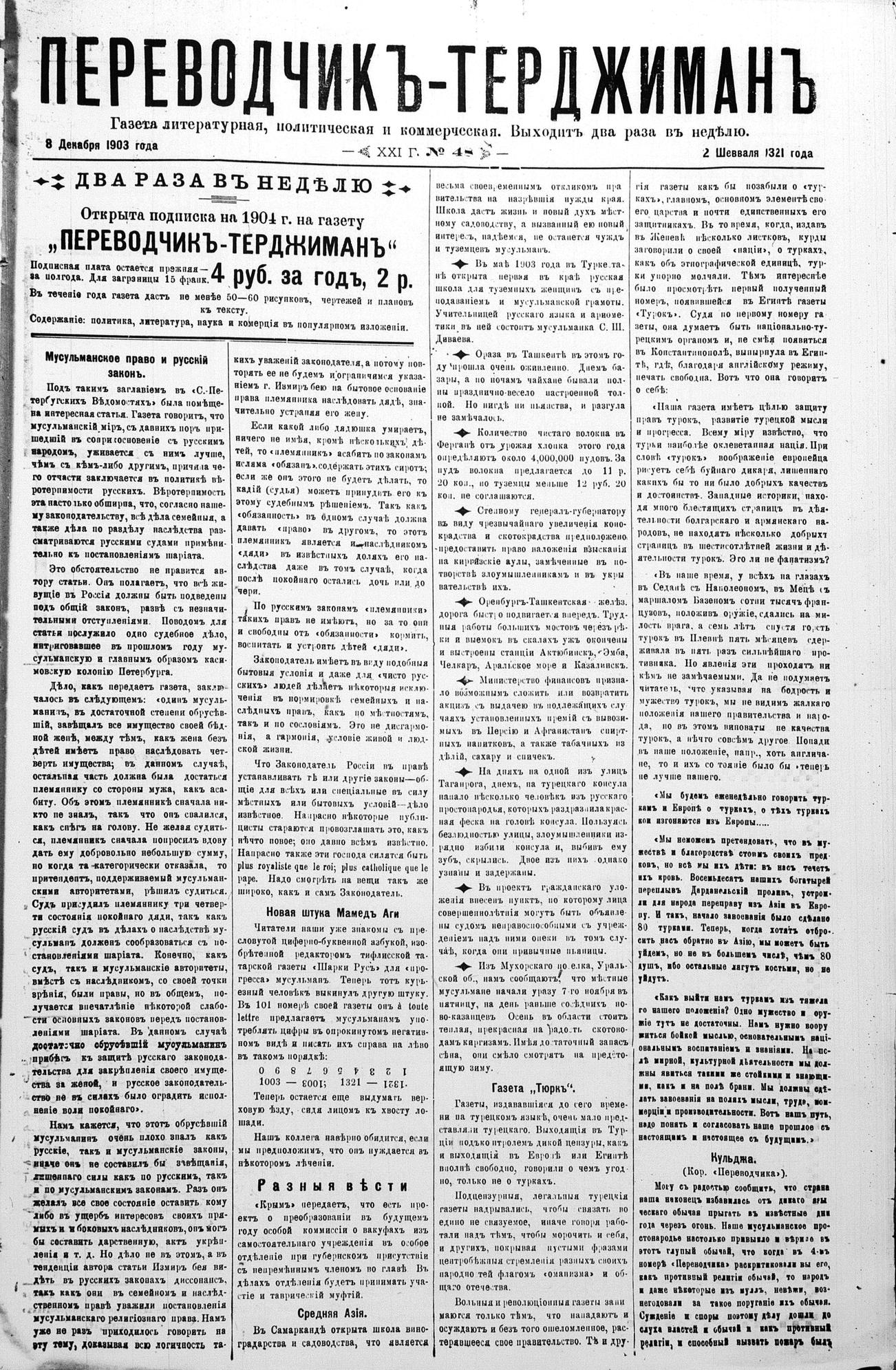 Tercüman, 08 December 1903 Year 21 No 48