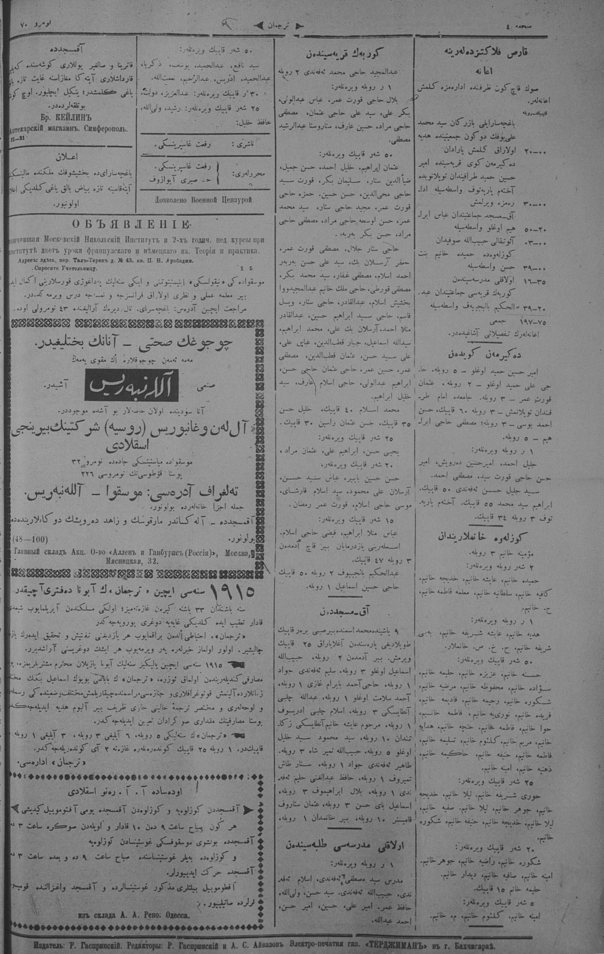 Different spellings of Tercüman: Terdzhiman, Terjuman, Perevodçik and Terjiman.
