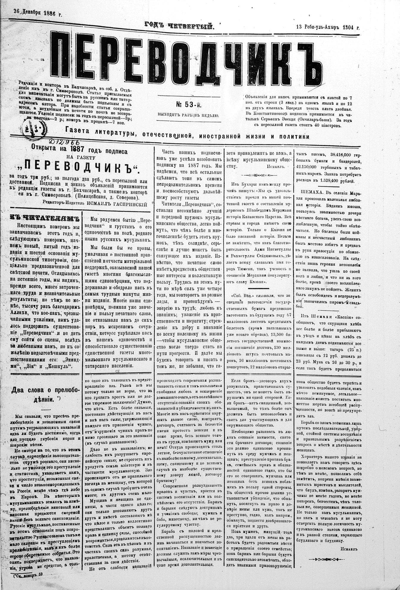 Tercüman, 26 December 1886 Year 4 No 53