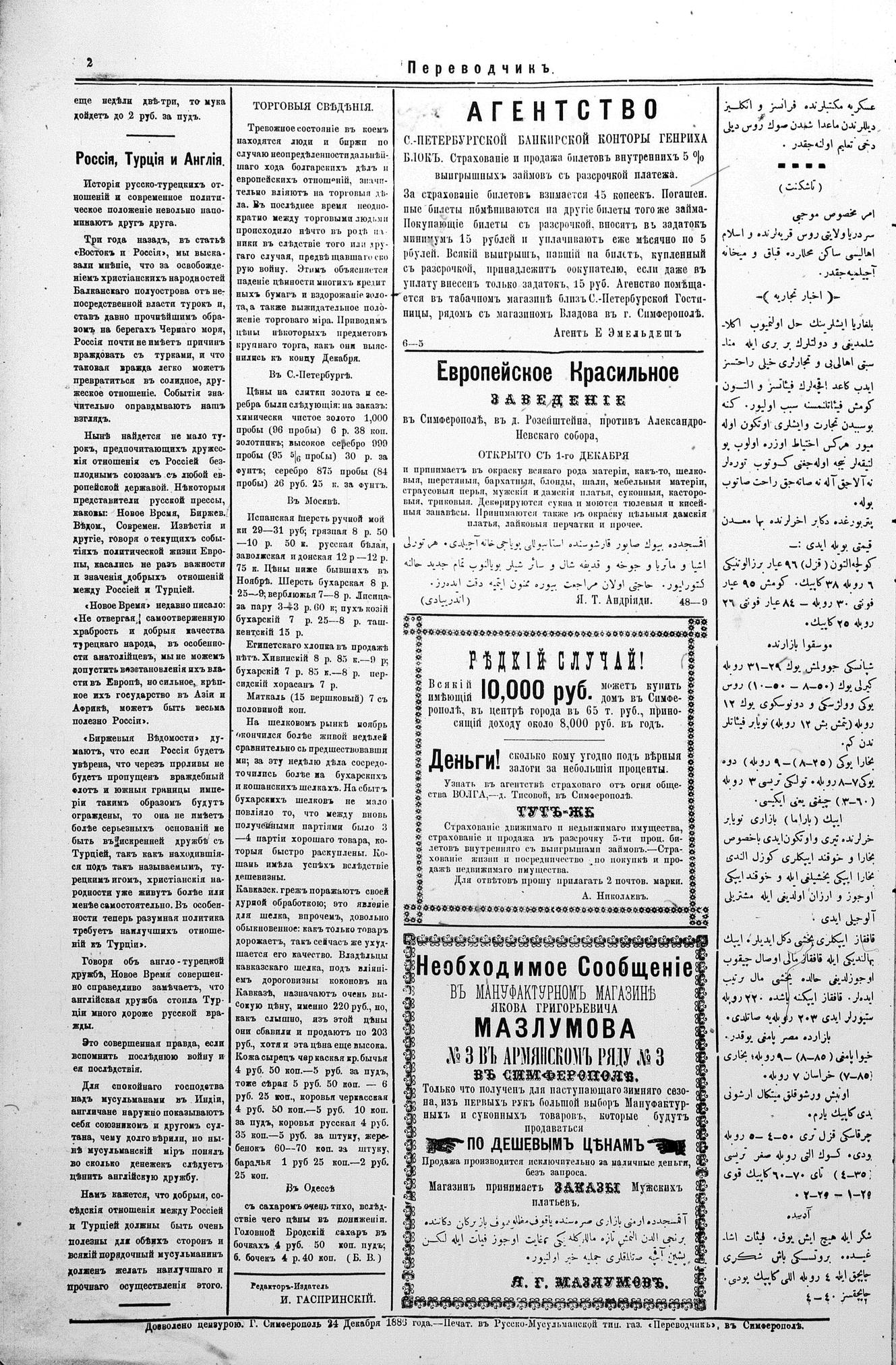 Turkish-Russian newspaper published in Crimea by İsmail Gaspıralı.
