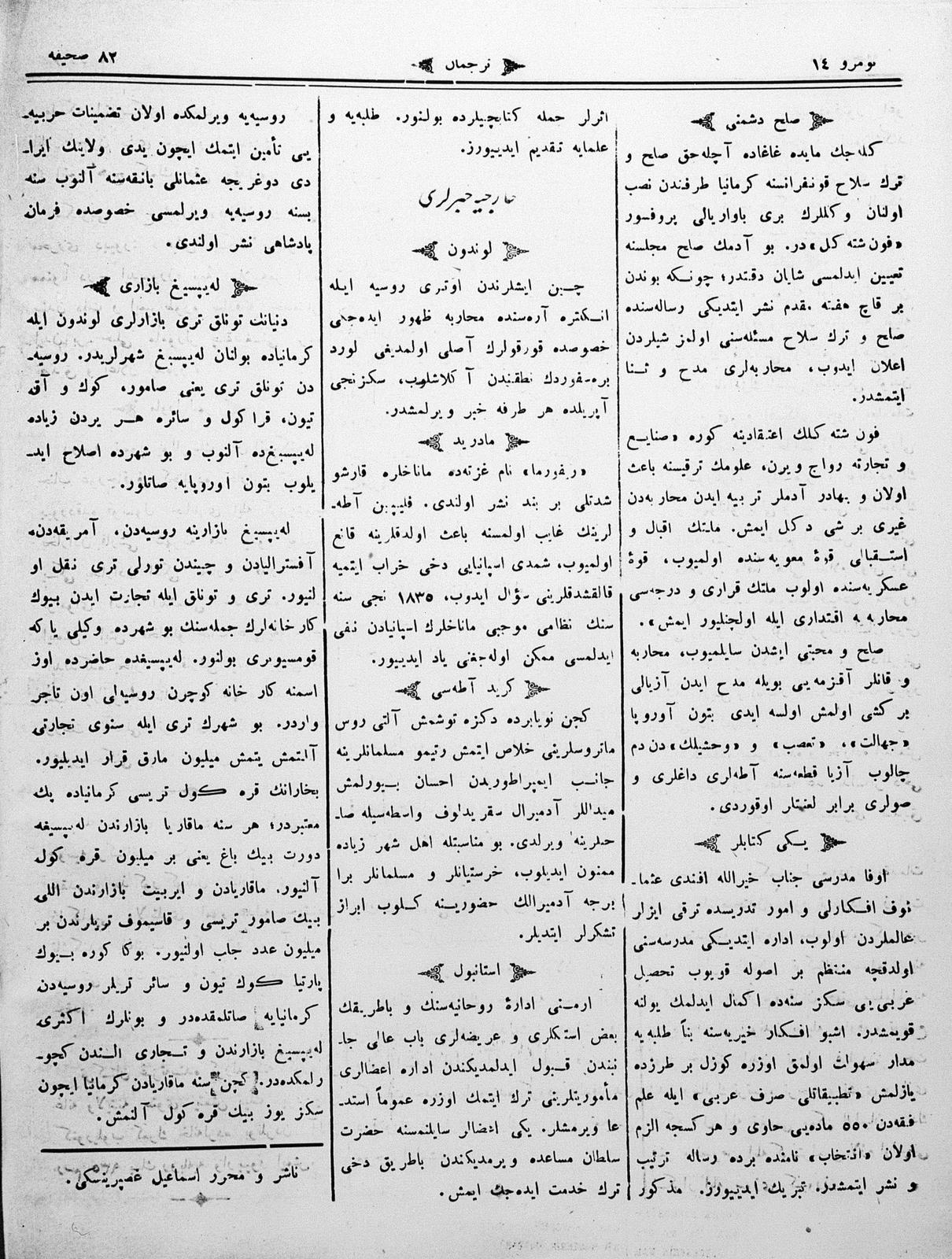 The name of the newspaper changed to Tercüman-ı Ahval-i Zaman in 1905. In 1909, it started to be published under its first name, Tercüman.