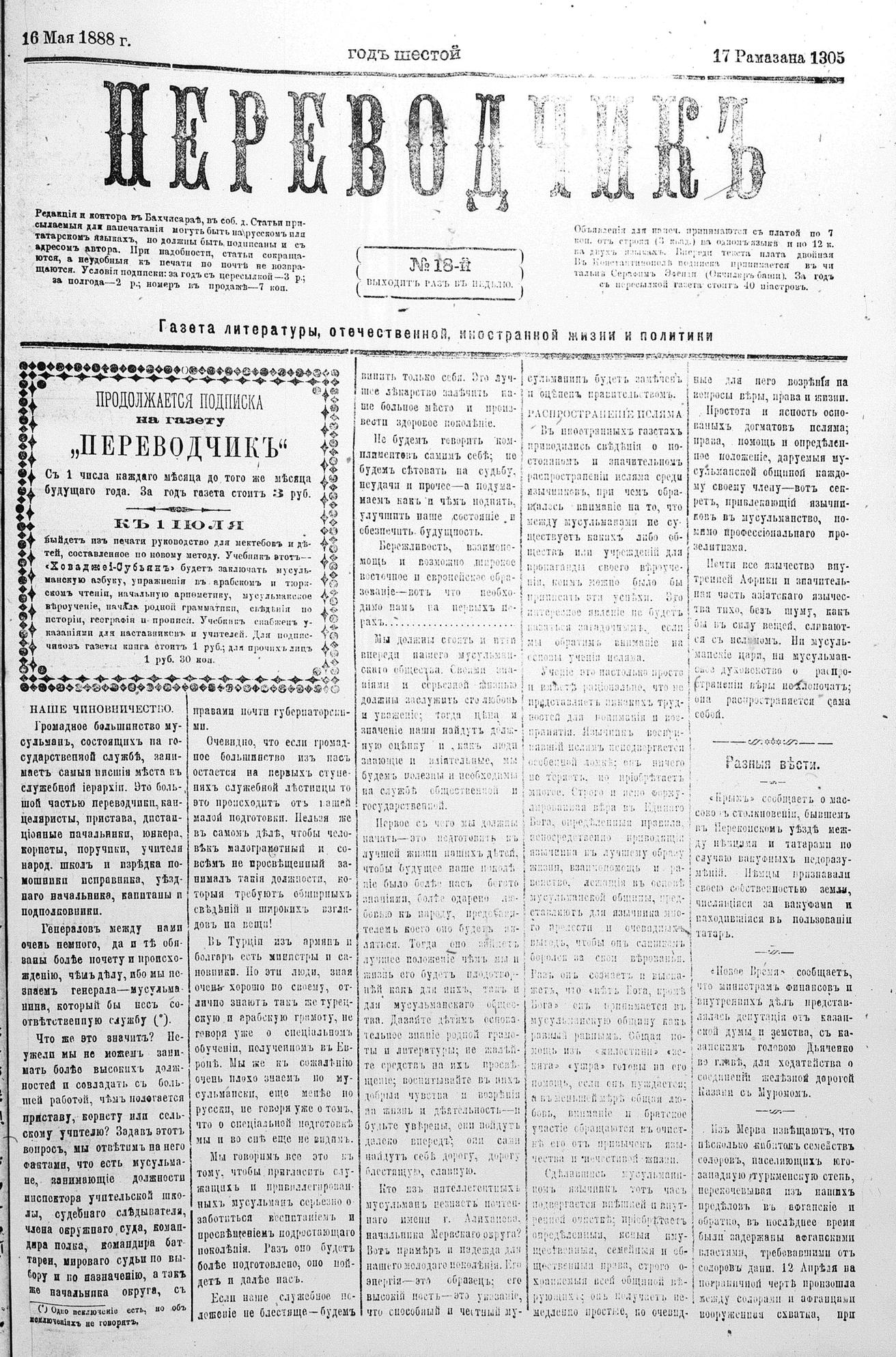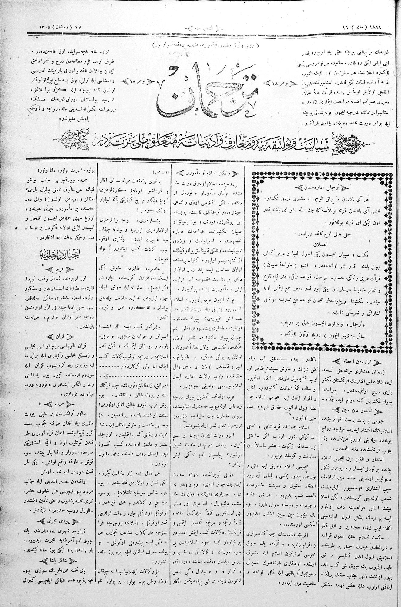 Tercüman, 16 May 1888 Year 6 No 18