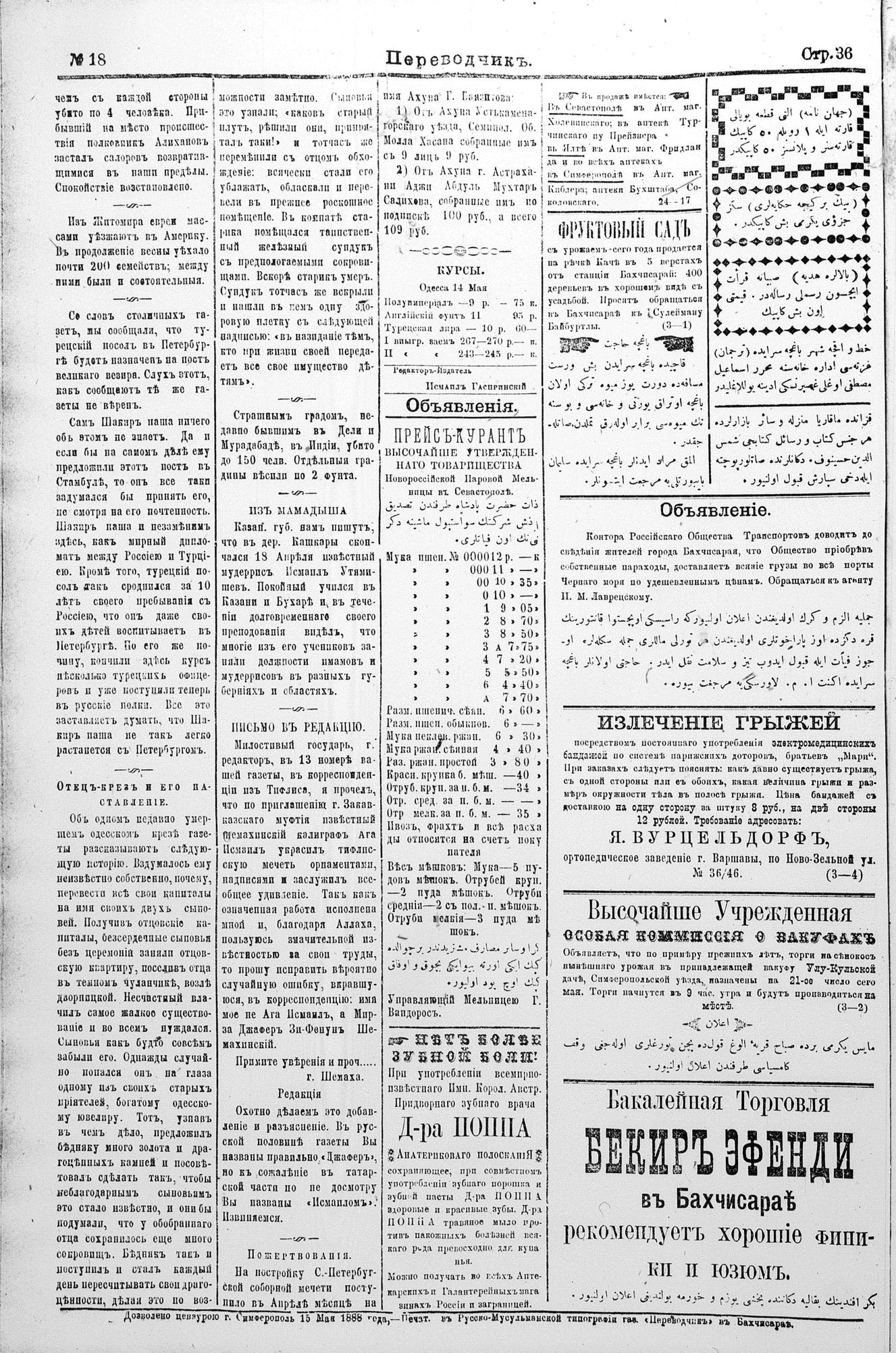 Turkish-Russian newspaper published in Crimea by İsmail Gaspıralı.